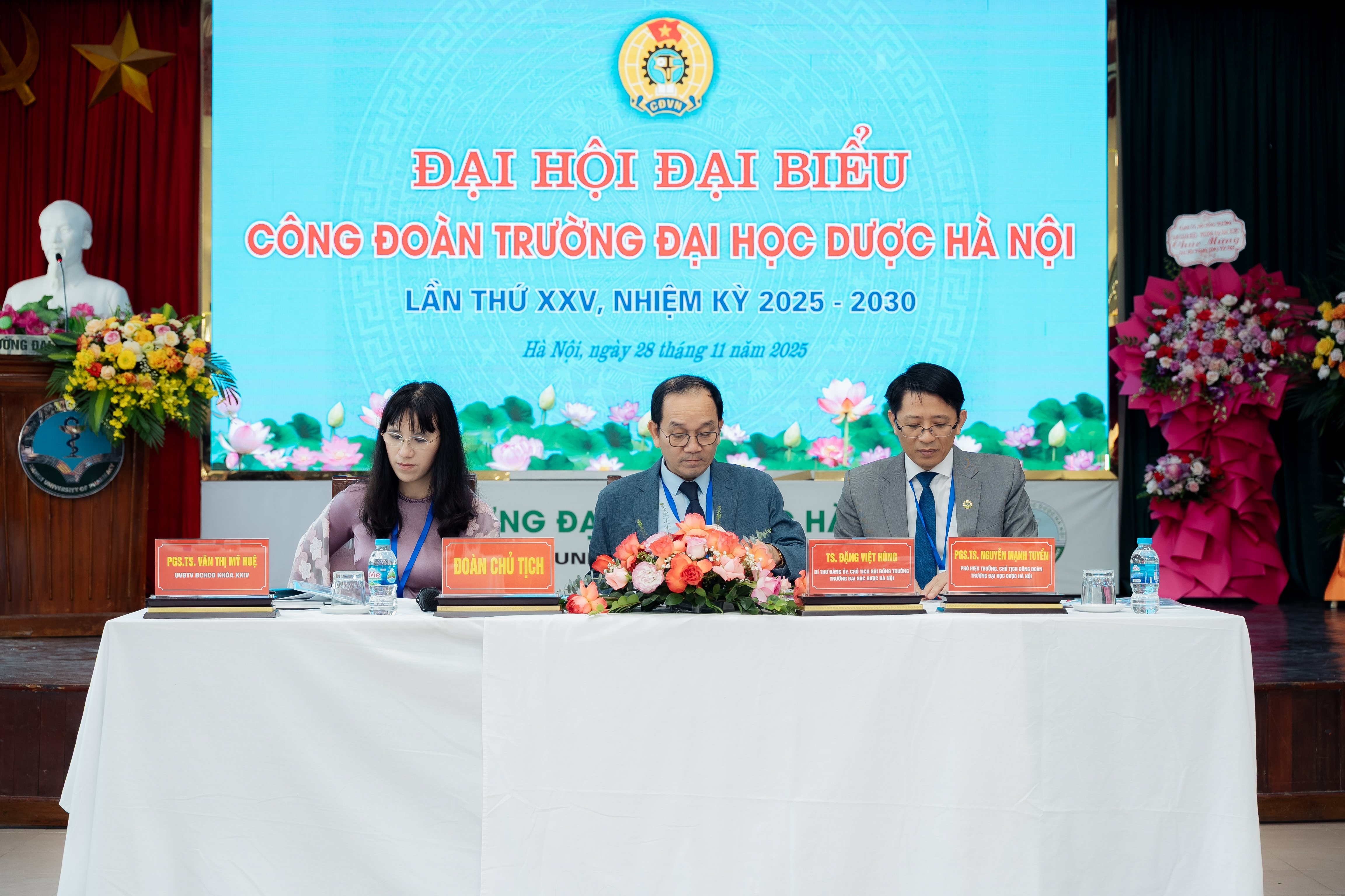 Đại hội Công đoàn Trường Đại học Dược Hà Nội khóa XXV, nhiệm kỳ 2025–2030 đã khép lại trong bầu không khí phấn khởi, tin tưởng. Với khát vọng đột phá, tinh thần đoàn kết và sáng tạo, Ban Chấp hành Công đoàn khóa mới cùng toàn thể đoàn viên quyết tâm biến Nghị quyết Đại hội thành các chương trình, phong trào cụ thể, thiết thực; góp phần xây dựng Trường Đại học Dược Hà Nội ngày càng phát triển, xứng đáng với sứ mạng, tầm nhìn và chiến lược của một cơ sở đào tạo – nghiên cứu dược học hàng đầu cả nước.