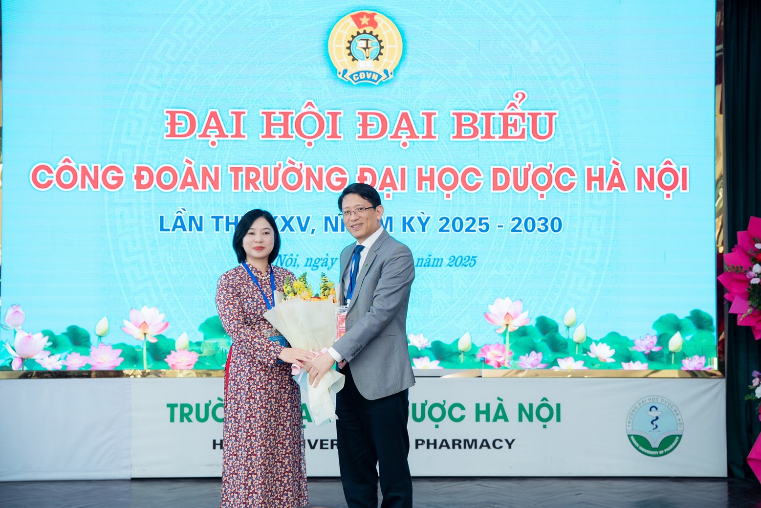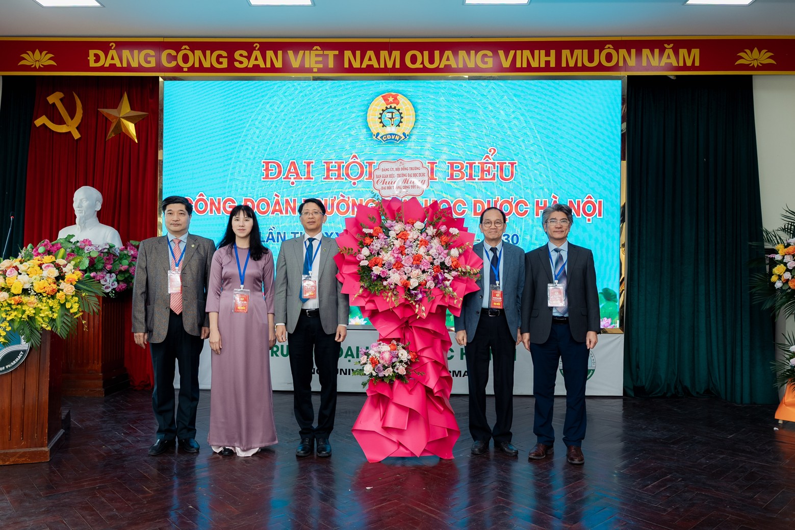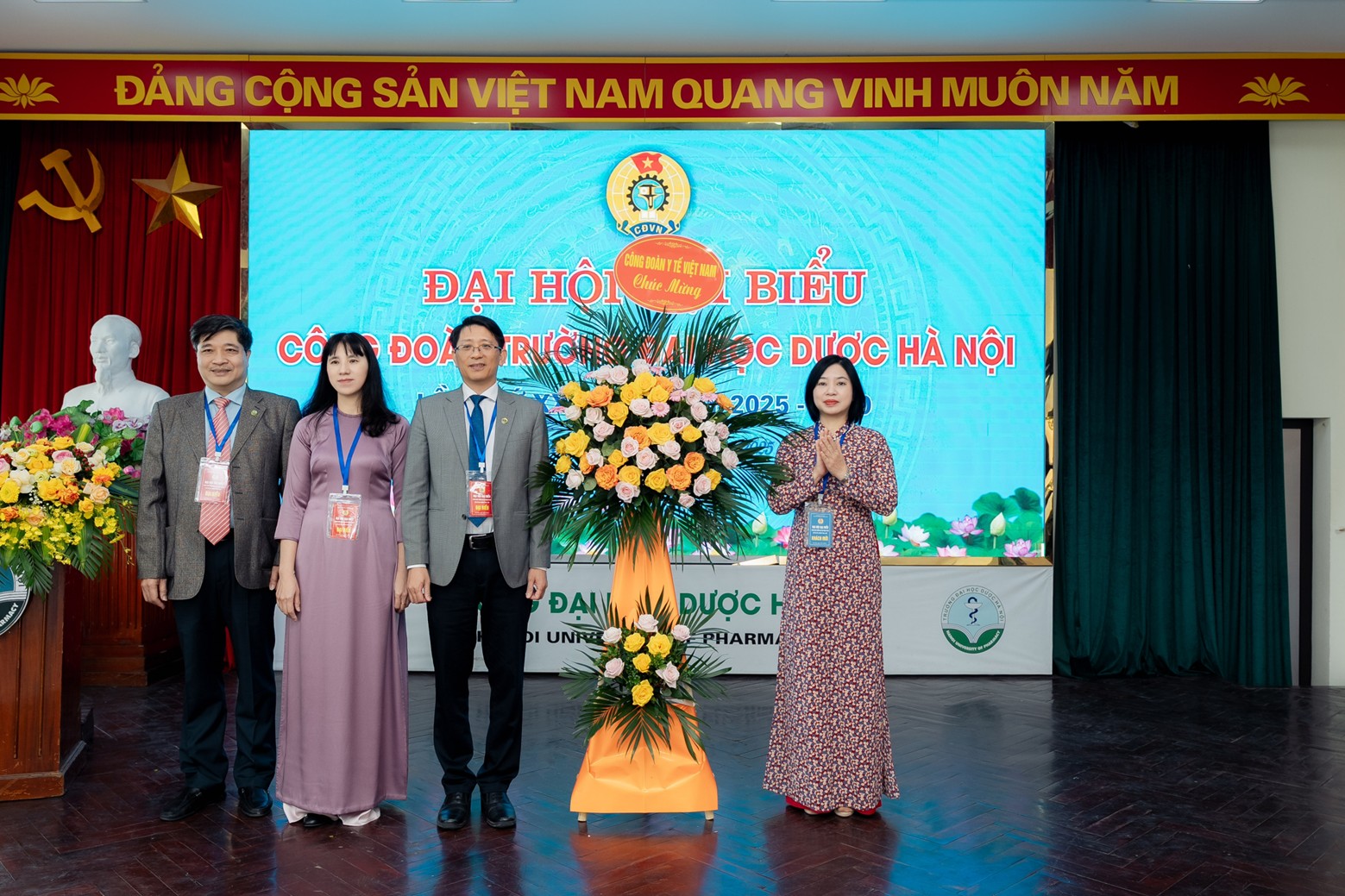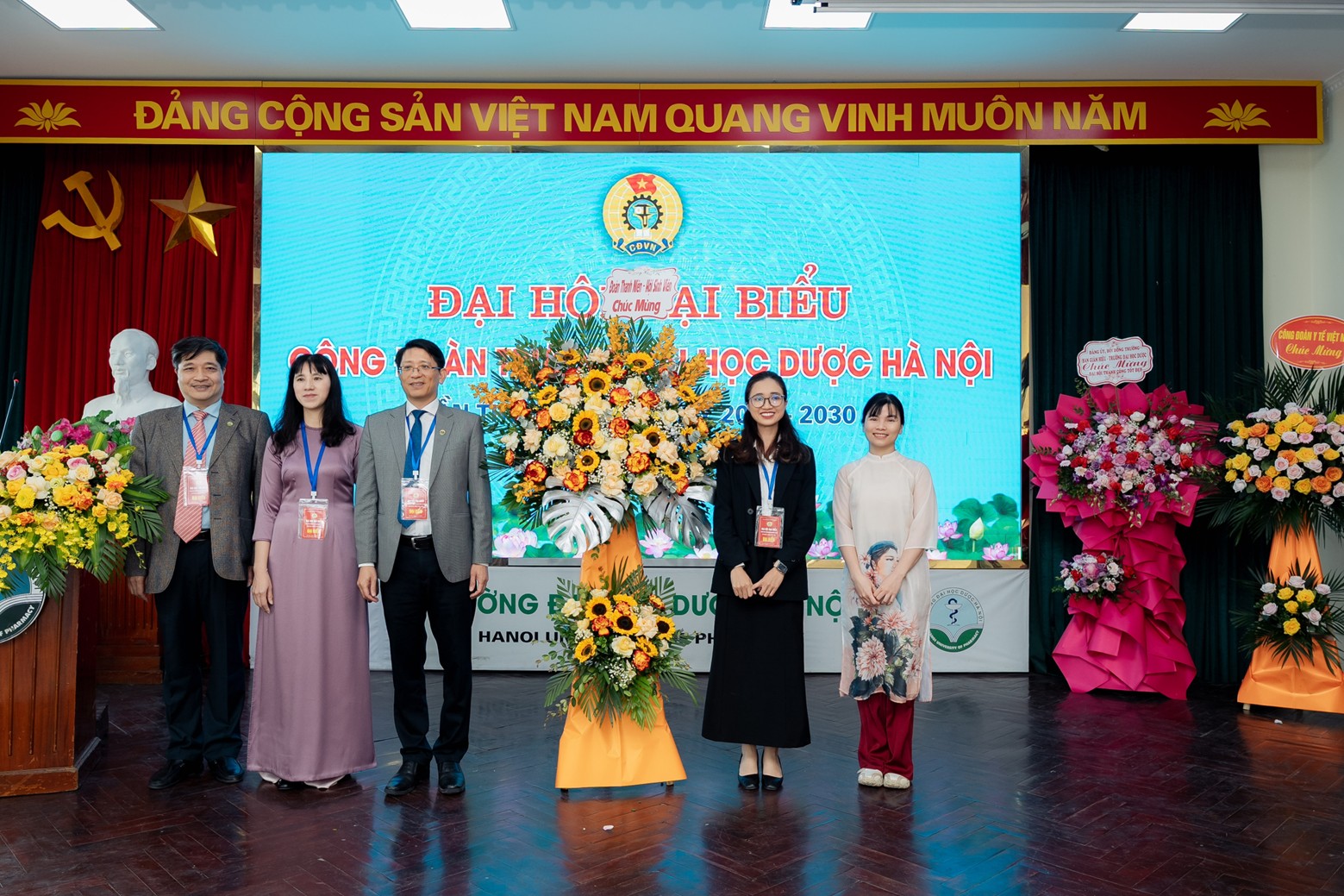 Lãnh đạo Công đoàn Y tế Việt Nam, Lãnh đạo Trường Đại học Dược Hà Nội tặng hoa chúc mừng BCH Công đoàn và UBKT khoá XXV