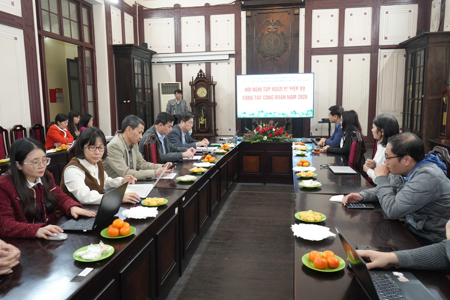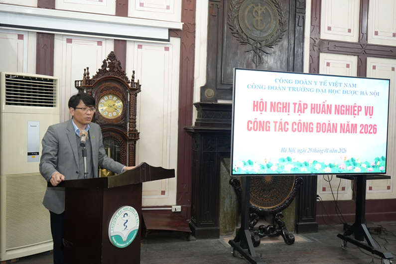 Xác định công tác bồi dưỡng nghiệp vụ công đoàn, cập nhật chính sách là nhiệm vụ trọng tâm hằng năm, thực hiện kế hoạch công tác công đoàn năm 2026, ngày 29/01/2026, tại Phòng Hội đồng, Công đoàn Trường Đại học Dược Hà Nội tổ chức Hội nghị tập huấn nghiệp vụ công tác công đoàn cho các cán bộ công đoàn của Trường. Đến dự buổi tập huấn, về phía Công đoàn Y tế Việt Nam có đồng chí Vũ Anh Tuấn – Ủy viên Ban thường vụ, Phó Chủ tịch Công đoàn Y tế Việt Nam; đồng chí Lê Thị Thương – Chuyên viên Ban Quan hệ lao động, Công đoàn Y tế Việt Nam. Về phía Công đoàn Trường Đại học Dược Hà Nội có PGS.TS Nguyễn Mạnh Tuyển – UV BCH Công đoàn Y tế Việt Nam, UVBTV Đảng ủy, Phó Hiệu trưởng, Chủ tịch Công đoàn Trường cùng các đồng chí trong BCH, Ban Thanh tra nhân dân, Ủy ban Kiểm tra, các Tổ trưởng, Tổ phó công đoàn.