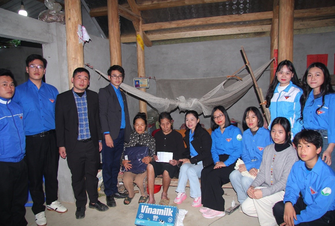 Dr. Nguyen Cong Truong, Secretary of the University Youth Union, lecturers from Hanoi University of Pharmacy and local commune officials visited and presented gifts to families in difficult circumstances.