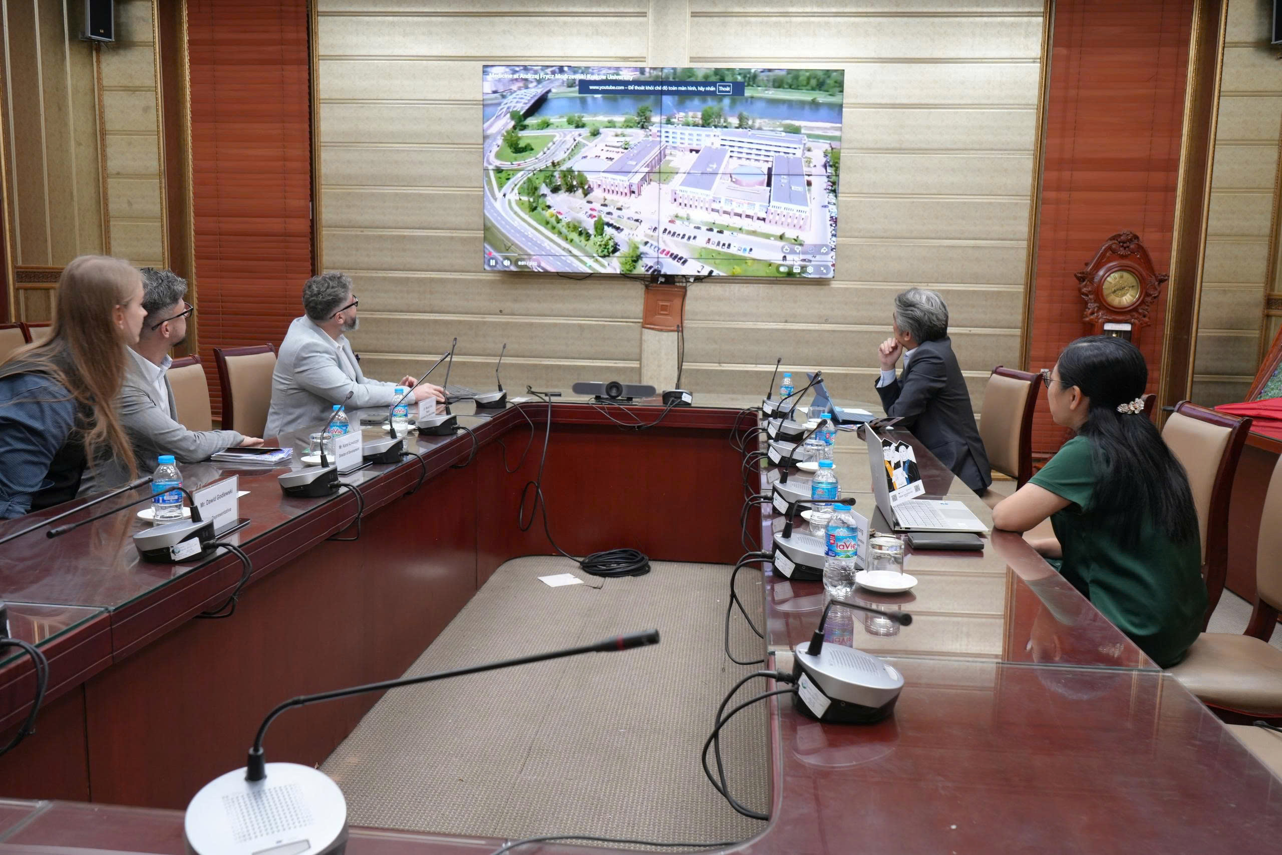 Tại buổi làm việc, hai bên đã trao đổi về các nội dung hợp tác tiềm năng: (i) Xây dựng và phát triển Chương trình hợp tác Erasmus+ trao đổi sinh viên, cán bộ giữa các đối tác, (ii) Xây dựng chương trình hợp tác song bằng cho phép sinh viên học tập trao đổi tại đại học đối tác và có thể được công nhận kết quả học tập, công nhận tín chỉ, (iii) Phát triển các dự án hợp tác nghiên cứu song phương. GS.TS Nguyễn Hải Nam, Hiệu trưởng Trường Đại học Dược Hà Nội bày tỏ niềm vui mừng được đón tiếp đoàn, đồng thời mong muốn trong thời gian tới hai bên sẽ phát triển các chương trình/dự án hợp tác cụ thể, ký kết thỏa thuận hợp tác, trước mắt hai bên thống nhất sẽ ký kết Văn bản bày tỏ quan tâm về hợp tác.