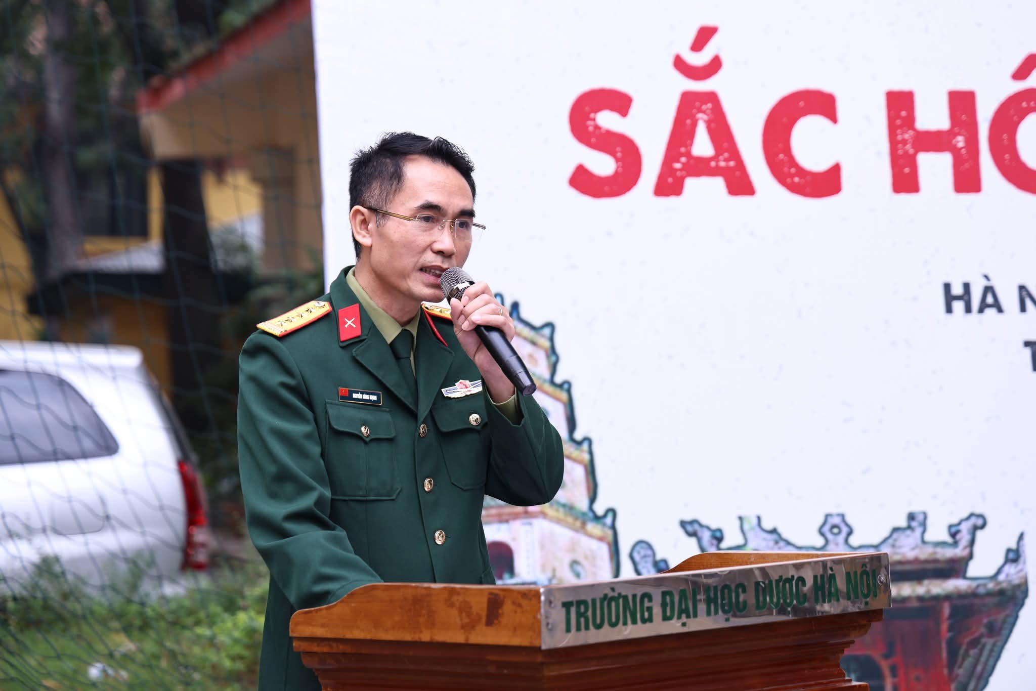 Đại tá Nguyễn Hùng Mạnh - Phó Chủ nhiệm chính trị Bệnh viện Trung ương quân đội 108 phát biểu trong buổi lễ khai mạc.