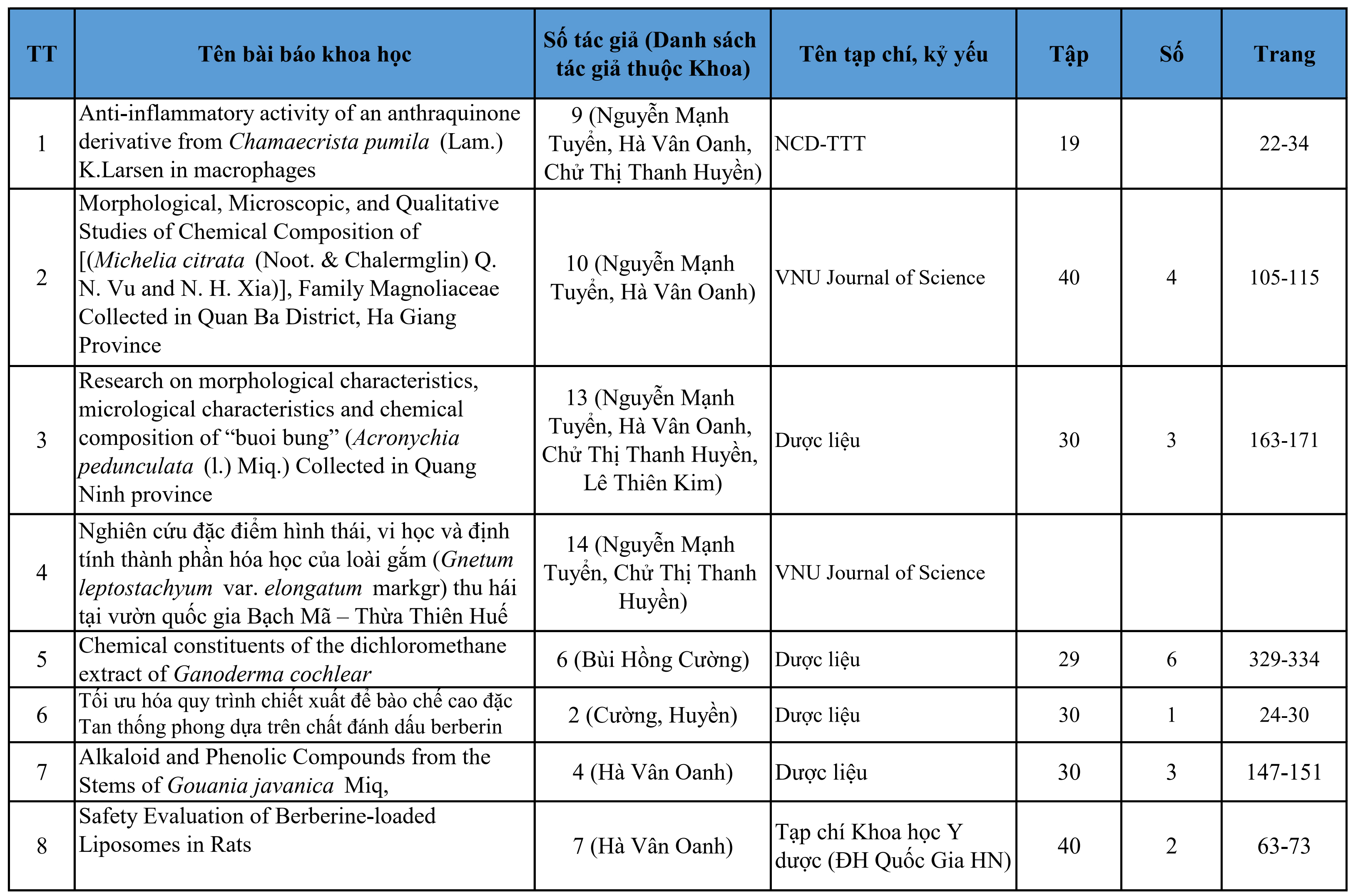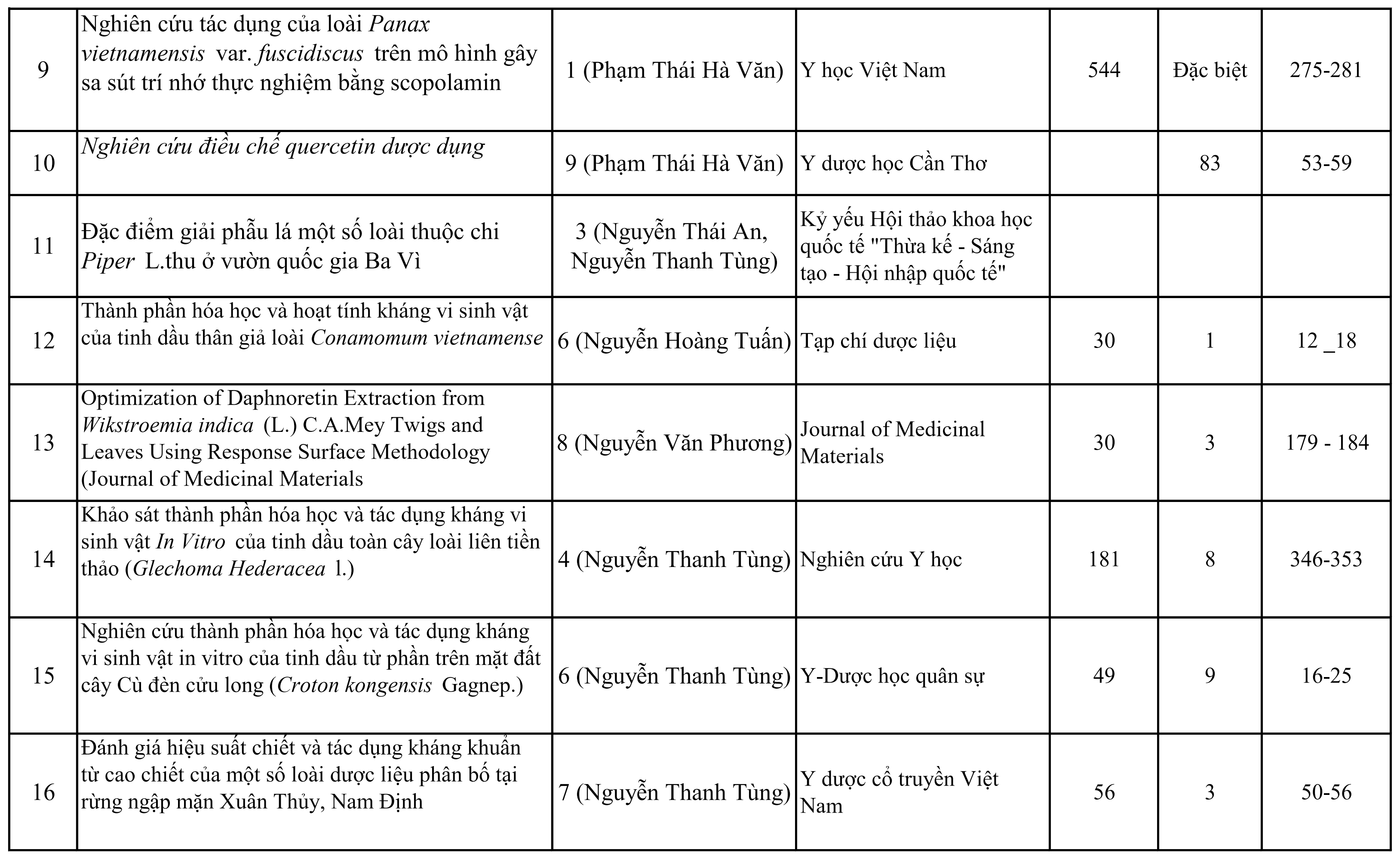 Danh mục bài báo khoa học đăng trên tạp chí trong nước năm học 2024-2025