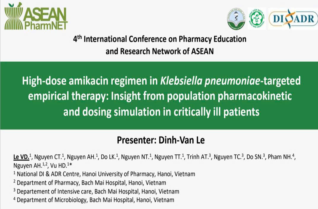 Theo Công văn số 6193/BGDĐT-KHCNTT ngày 03/10/2025 của Bộ Giáo dục và Đào tạo, năm 2025, đề tài được lựa chọn tham dự vòng Chung khảo Giải thưởng KH&CN dành cho sinh viên, lĩnh vực Khoa học Y – Dược có tên: “Phân tích dược động học quần thể và phát triển toán đồ áp dụng liều cao amikacin thông qua giám sát nồng độ thuốc trong máu ở bệnh nhân nặng”, do sinh viên Lê Đình Văn thực hiện dưới sự hướng dẫn của PGS.TS. Vũ Đình Hòa và PGS.TS. Nguyễn Hoàng Anh.