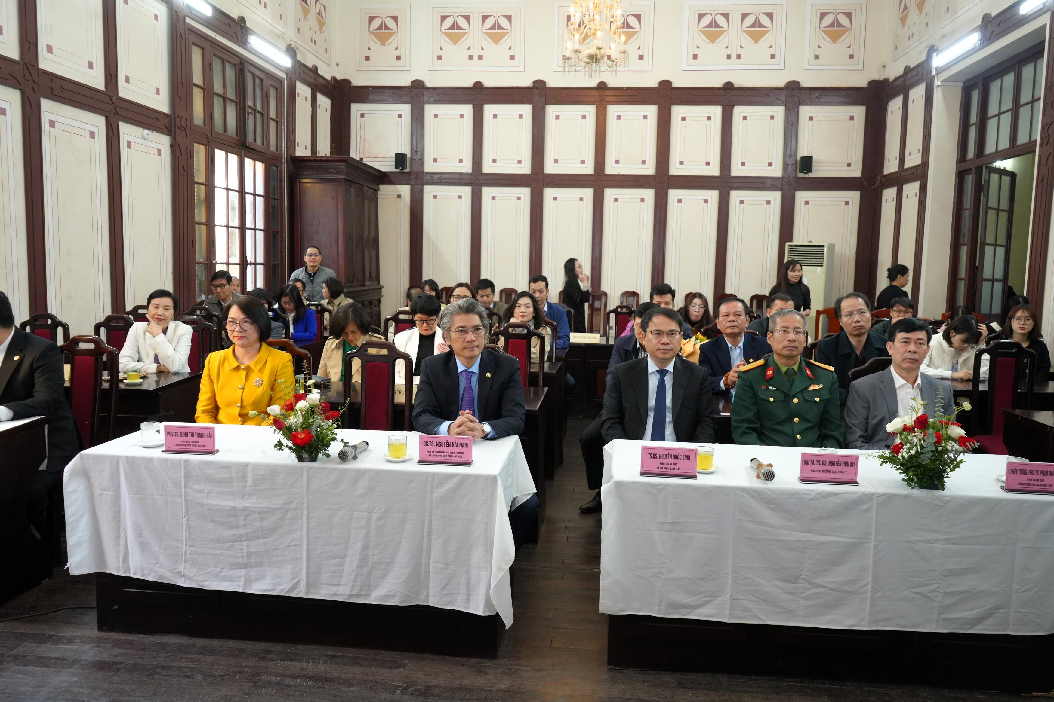 Tham dự Lễ bổ nhiệm, về phía Nhà trường có GS.TS. Nguyễn Hải Nam - Phó Bí thư Đảng ủy, Hiệu trưởng Trường ĐH Dược HN, PGS.TS. Đinh Thị Thanh Hải - Phó Hiệu trưởng và Trưởng/ Phó Trưởng các đơn vị, giảng viên, học viên của Nhà Trường. Về phía Bệnh viện Trung Ương Quân đội 108 có Thiếu tướng. PGS. TS. Phạm Thái Giang - Phó Giám đốc Bệnh viện và đại diện lãnh đạo, cán bộ Khoa dược của Bệnh viện. Bên cạnh đó buổi Lễ còn vinh hạnh có sự hiện hiện của Đại tá, TS. DS. Nguyễn Hữu Mỹ - Phó Cục Trưởng Cục Quân Y, TS.DS. Nguyễn Quốc Bình - PGĐ Bệnh viện Chợ Rẫy, và các nhà giáo được bổ nhiệm.