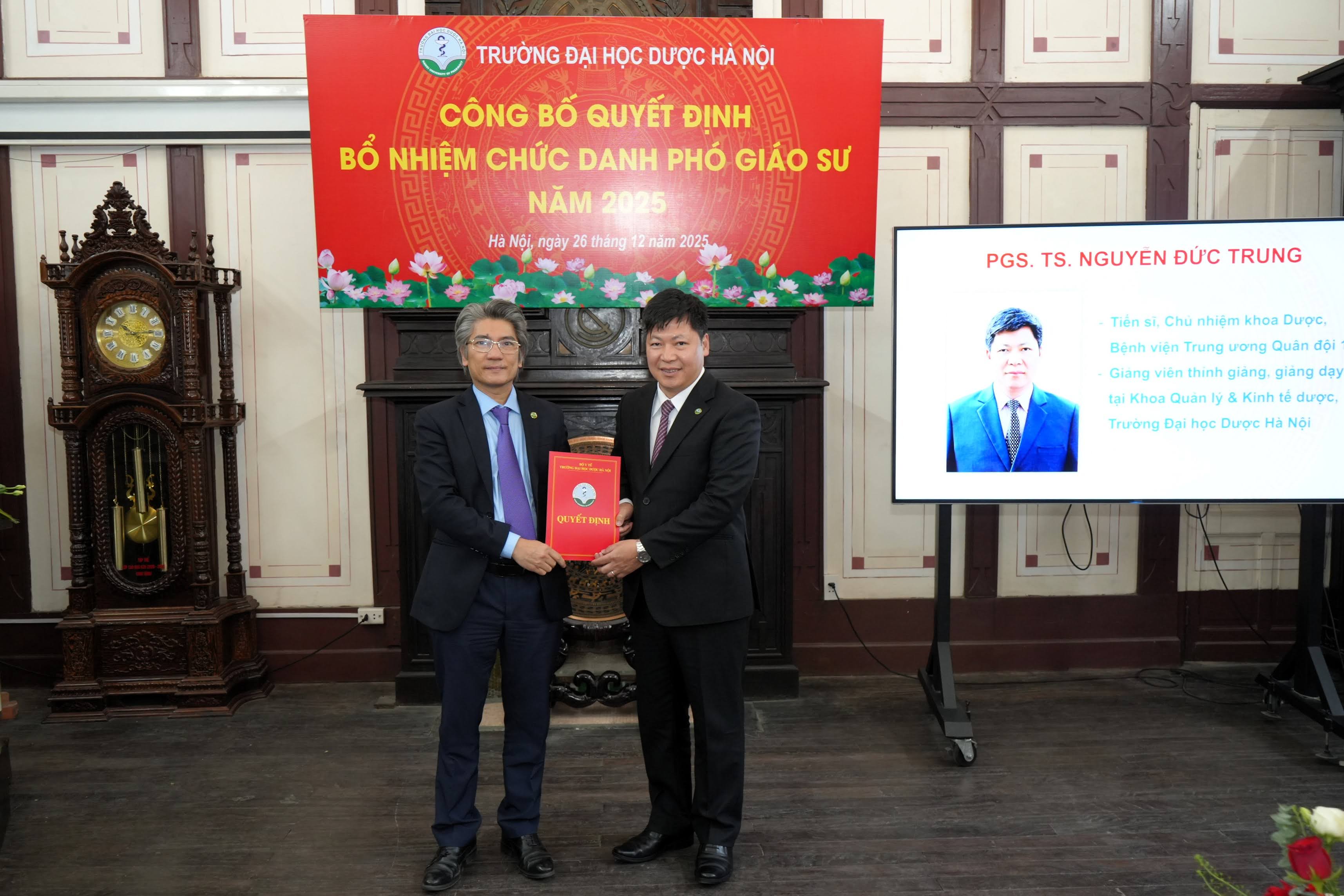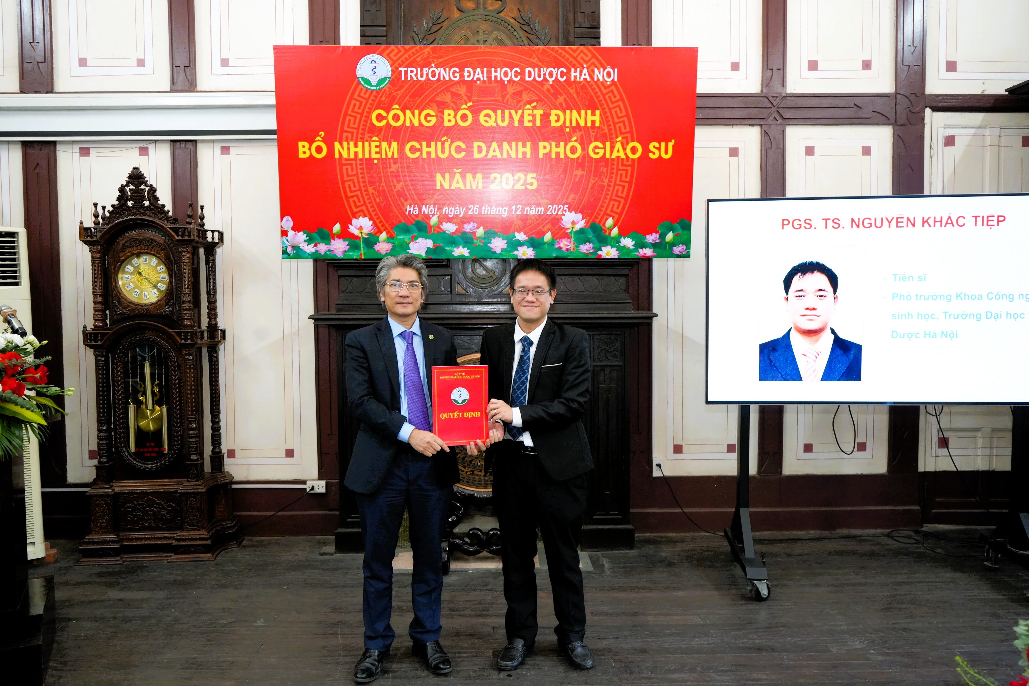 Sáng ngày 26/12, Trường Đại học Dược Hà Nội đã long trọng tổ chức Lễ công bố quyết định bổ nhiệm chức danh phó giáo sư năm 2025 cho các giảng viên cơ hữu và giảng viên thỉnh giảng của Nhà trường đã được Hội đồng Giáo sư Nhà nước công nhận đạt tiêu chuẩn.