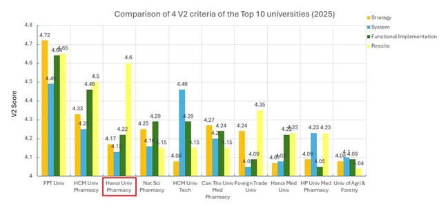 Beyond excelling in individual criteria, Hanoi University of Pharmacy has firmly secured its place among the Top 3 universities with the highest average V2 accreditation scores in Vietnam. The University stands as a pioneer in the health sciences – where reputation is built on tradition, and quality is reinforced through a system of modern, transparent, and sustainable governance.