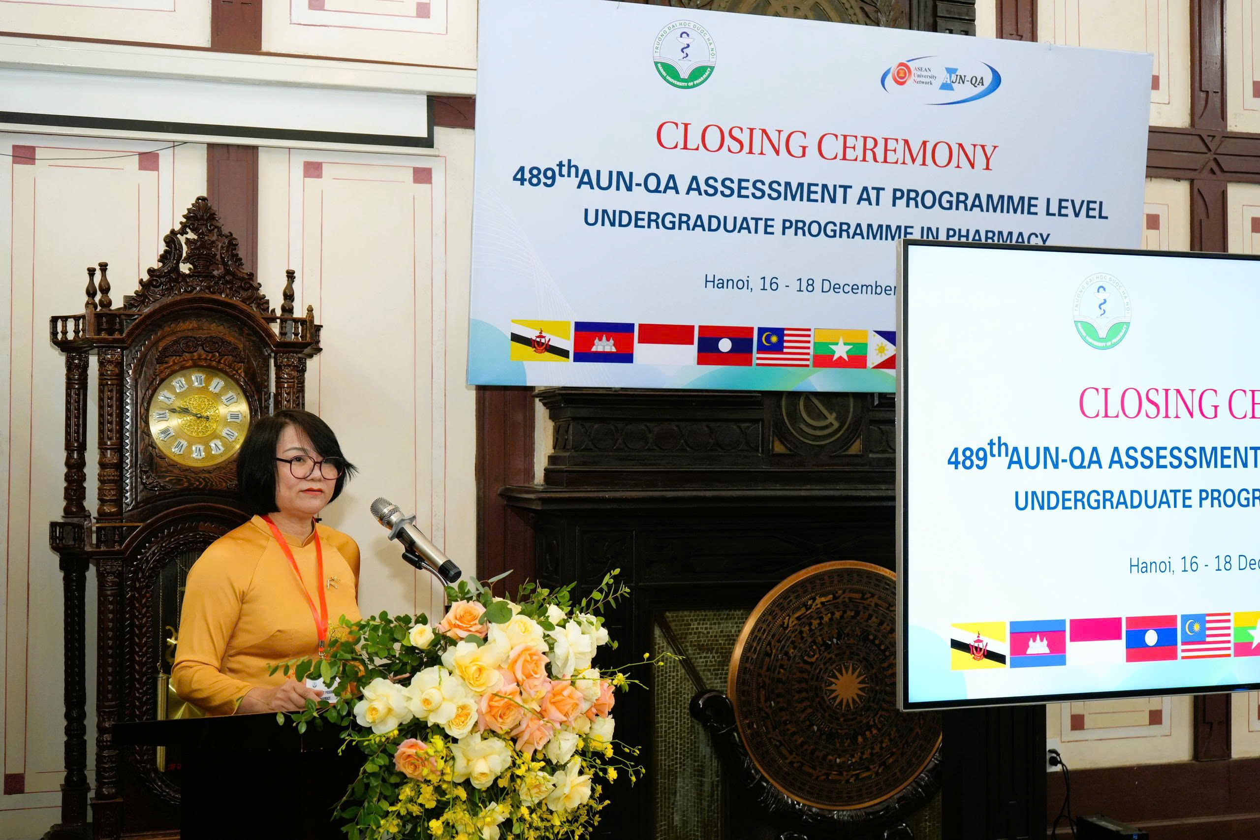 Buổi lễ bế mạc kết thúc trong không khí đoàn kết và tin tưởng. Kết quả của đợt đánh giá lần này không chỉ là sự công nhận về chất lượng đào tạo mà còn là động lực để Trường Đại học Dược Hà Nội tiếp tục khẳng định vị thế là cơ sở đào tạo dược khoa hàng đầu, góp phần quan trọng vào sự nghiệp chăm sóc sức khỏe nhân dân và hội nhập giáo dục đại học khu vực. Cũng như thực hiện thắng lợi các nhiệm vụ chính trị đề ra trong Nghị quyết số 71-NQ/TW, ngày 22/8/2025 của Bộ Chính trị về đột phá phát triển giáo dục và đào tạo và Nghị quyết số 72-NQ/TW ngày 09/9/2025 của Bộ Chính trị về một số giải pháp đột phá, tăng cường bảo vệ, chăm sóc và nâng cao sức khỏe Nhân dân.