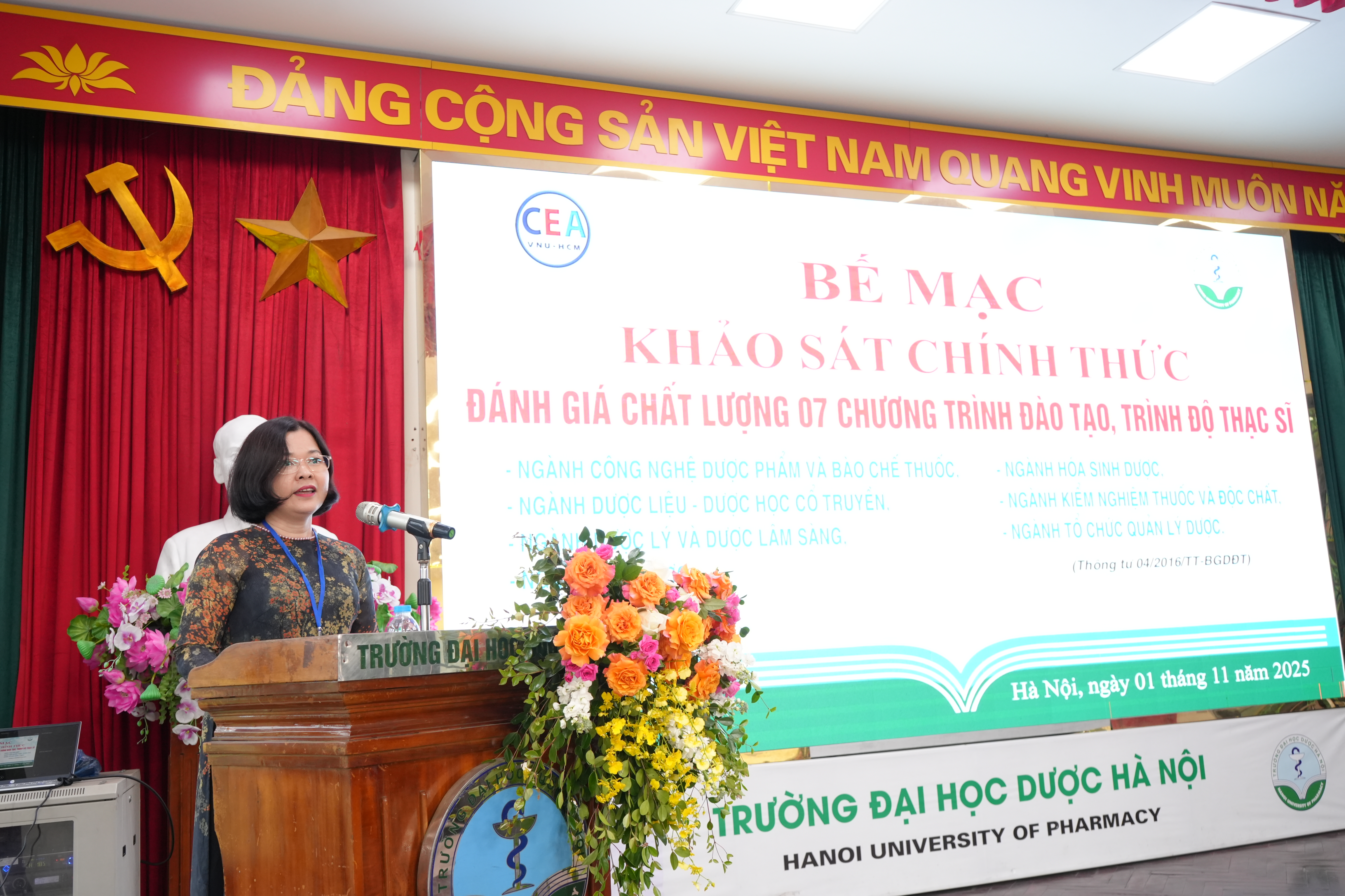 Chiều ngày 01/11/2025, tại Trường Đại học Dược Hà Nội đã diễn ra Lễ bế mạc đợt khảo sát chính thức đánh giá ngoài 07 chương trình đào tạo trình độ thạc sĩ, khép lại quá trình làm việc nghiêm túc, khoa học và đầy tâm huyết giữa Nhà trường và Trung tâm Kiểm định chất lượng giáo dục – Đại học Quốc gia Thành phố Hồ Chí Minh (CEA – ĐHQGHCM).