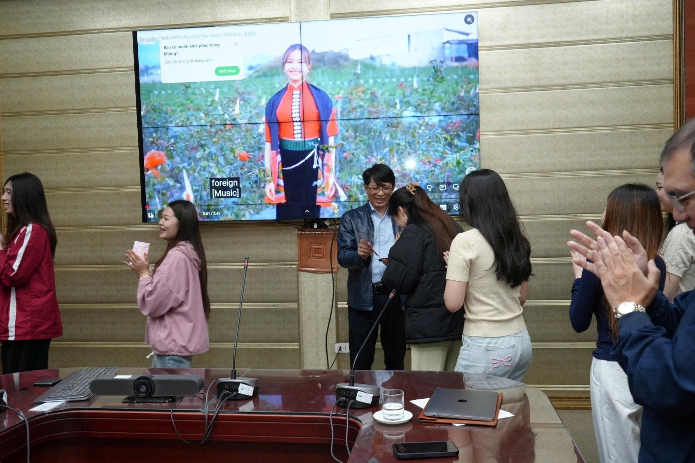 PGS.TS Nguyễn Mạnh Tuyển thay mặt lãnh đạo Nhà trường gửi tới các học viên, sinh viên quốc tế những lời chúc ân cần, món quà lì xì nhân dịp Tết đến Xuân về, mang thông điệp chúc may mắn, an lành gửi tới các lưu học sinh và gia đình trong năm mới Bính Ngọ theo phong tục truyền thống của Việt Nam.