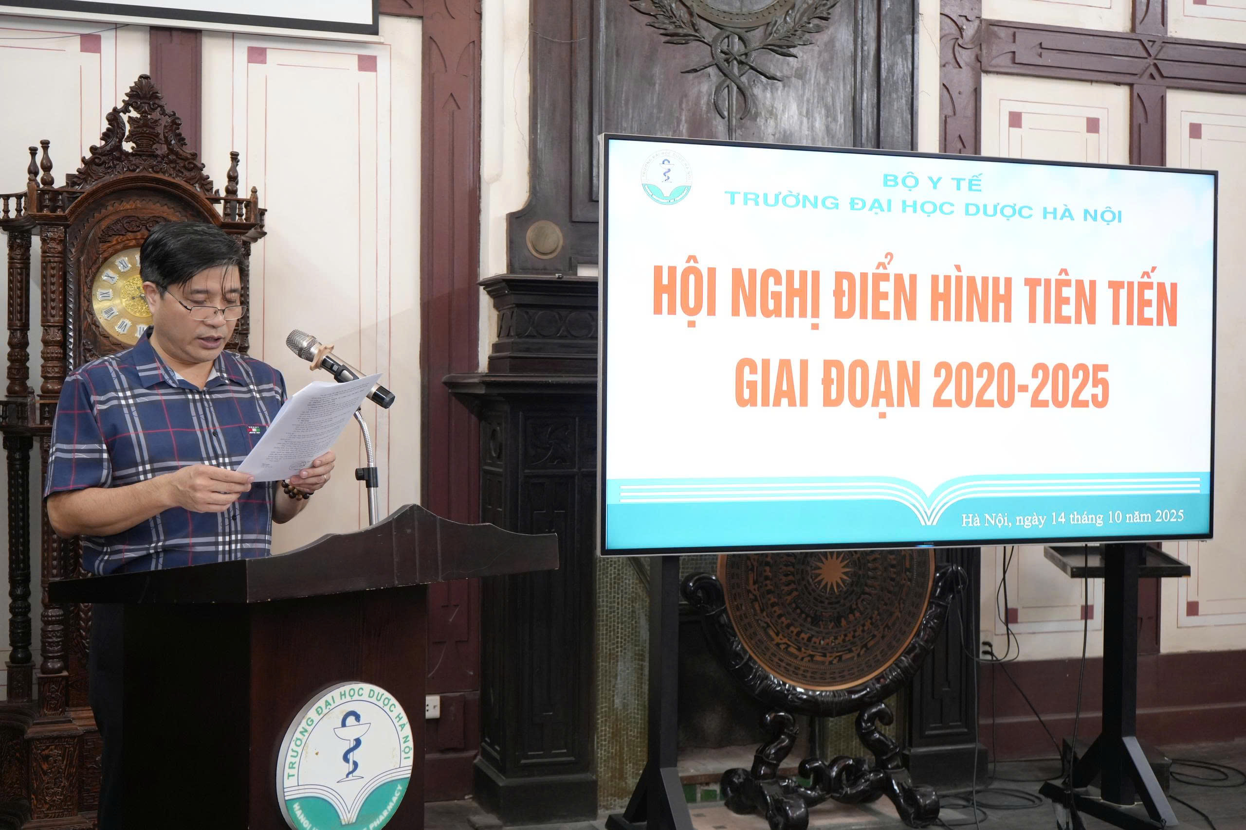 HUP –Nhằm vinh danh các cá nhân ưu tú có đóng góp lớn trên mọi mặt công tác, chiều ngày 14 /10/2025, Trường Đại học Dược Hà Nội đã tổ chức Hội nghị điển hình tiên tiến tiến tới Đại hội Thi đua yêu nước ngành Y tế lần thứ VIII - năm 2025. Tới dự Hội nghị có: TS. Đặng Việt Hùng – Bí thư Đảng ủy, Chủ tịch HĐT; GS. TS. Nguyễn Hải Nam - Phó BT Đảng ủy, Hiệu trưởng Nhà trường; PGS. TS. Đinh Thị Thanh Hải – Phó Hiệu trưởng; PGS. TS. Nguyễn Mạnh Tuyển - Phó Hiệu trưởng, Chủ tịch CĐ Trường cùng với 50 đại biểu là viên chức, người lao động hiện đang công tác tại Trường, là điển hình tiên tiến trong các phong trào thi đua của Trường trong giai đoạn 2020-2025.