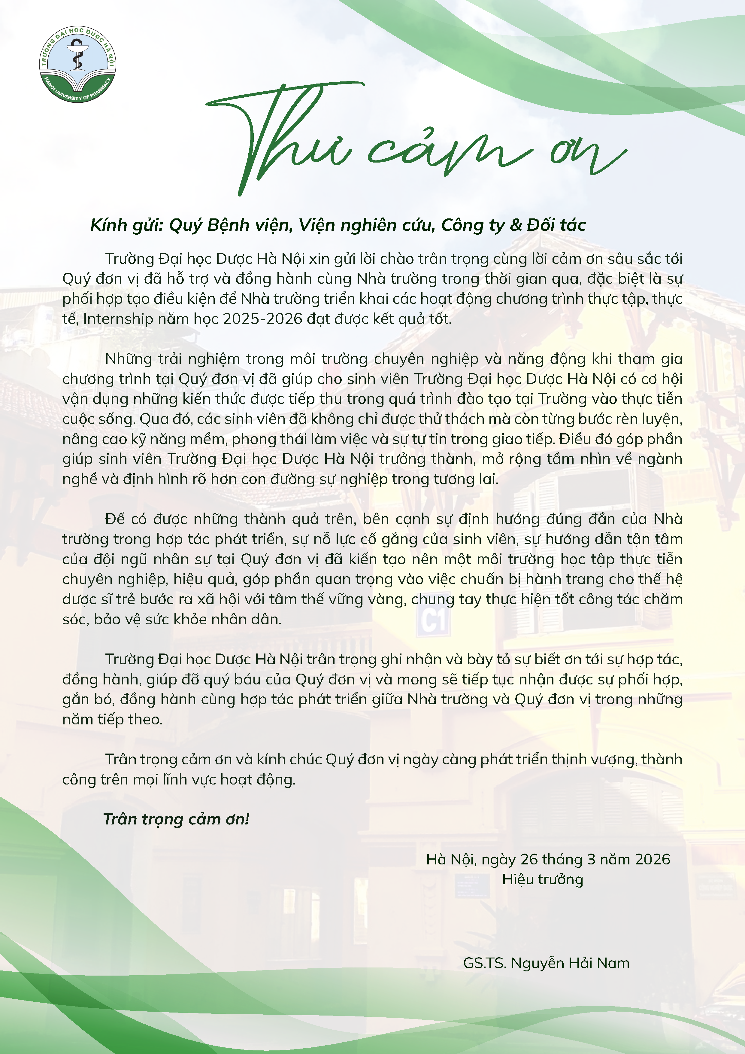 Báo cáo tổng kết công tác thực tập và triển khai Chương trình Internship năm học 2025-2026 đã thẳng thắn nhìn nhận những kết quả đạt được, đồng thời chỉ ra các nội dung cần tiếp tục hoàn thiện. Trên cơ sở đó, kế hoạch năm 2026 được định hướng theo hướng linh hoạt hơn, thực chất hơn và bám sát nhu cầu của các đơn vị sử dụng nhân lực trong lĩnh vực dược và y tế.