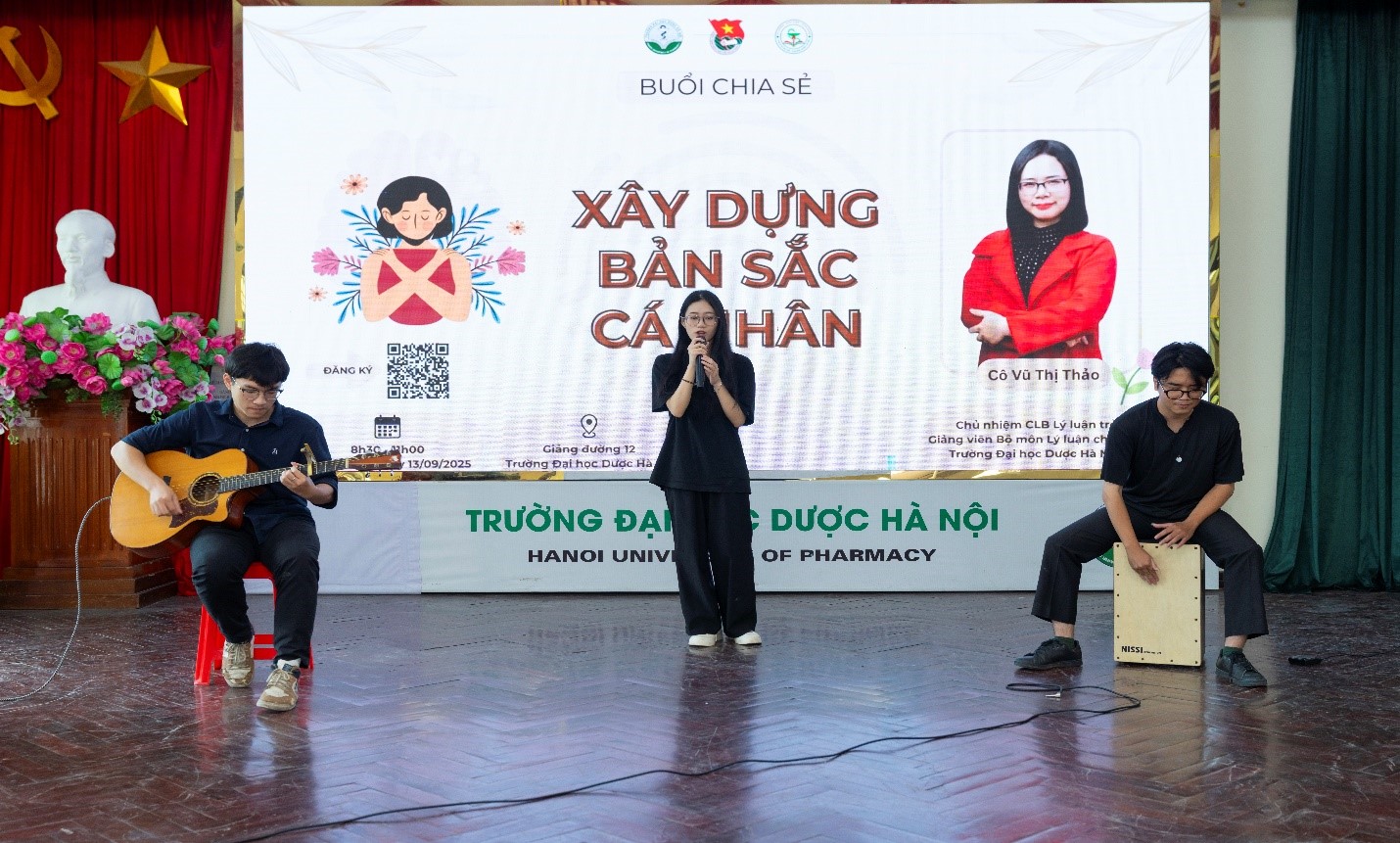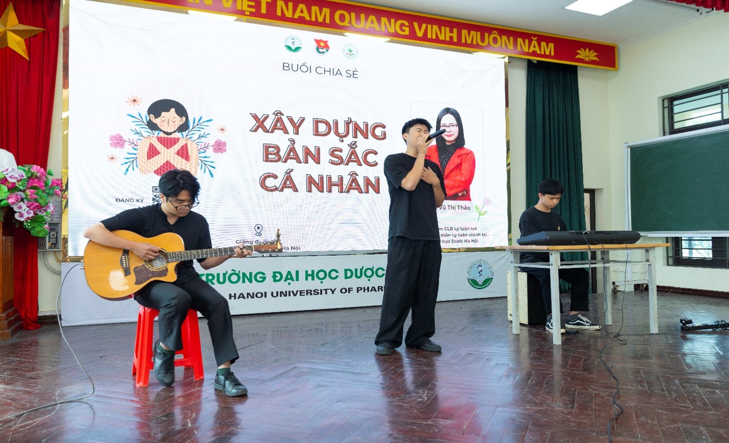 Chương trình mở đầu với những giai điệu trẻ trung và hiện đại được thể hiện bởi các thành viên CLB Guitar Pharma, 2 ca khúc “Còn gì đẹp hơn” và “Đi giữa trời rực rỡ” thực sự đã tạo nên bầu không khí sôi động và thân thiện, giúp các bạn sinh viên cởi mở và thoải mái hơn trước khi bước vào buổi chia sẻ.