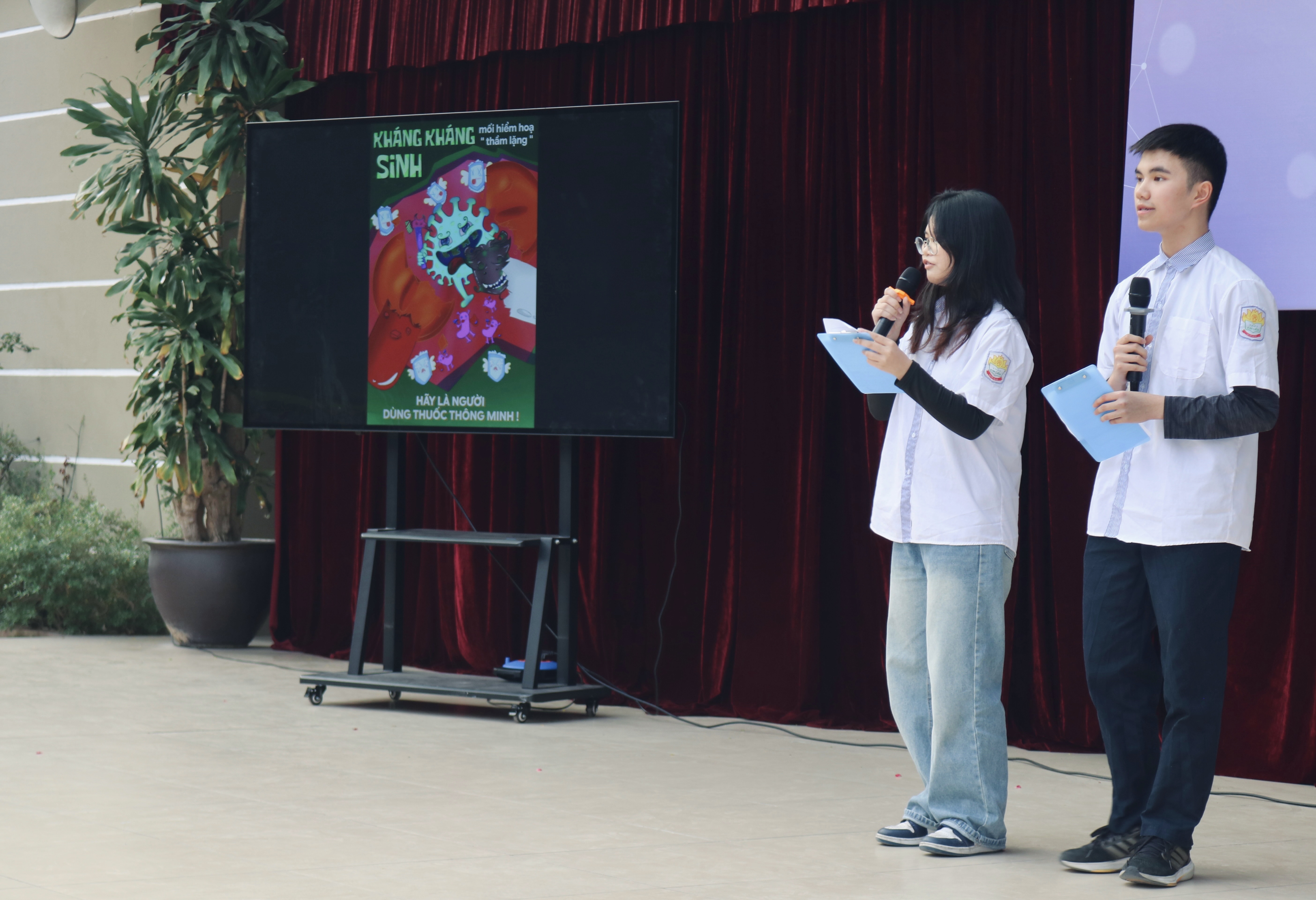 Mở đầu cho chương trình là Cuộc thi “Đại sứ truyền thông kháng kháng sinh”. Cuộc thi đã thu hút sự tham gia của 11 lớp khối 10, là nơi các đội thi lần lượt trình bày và truyền tải thông điệp xoay quanh chủ đề sử dụng kháng sinh an toàn, hợp lý và phòng chống kháng kháng sinh trong cộng đồng thông qua nhiều hình thức đa dạng như poster, tranh vẽ, hình ảnh minh họa, hùng biện, tranh biện và tiểu phẩm – diễn kịch.