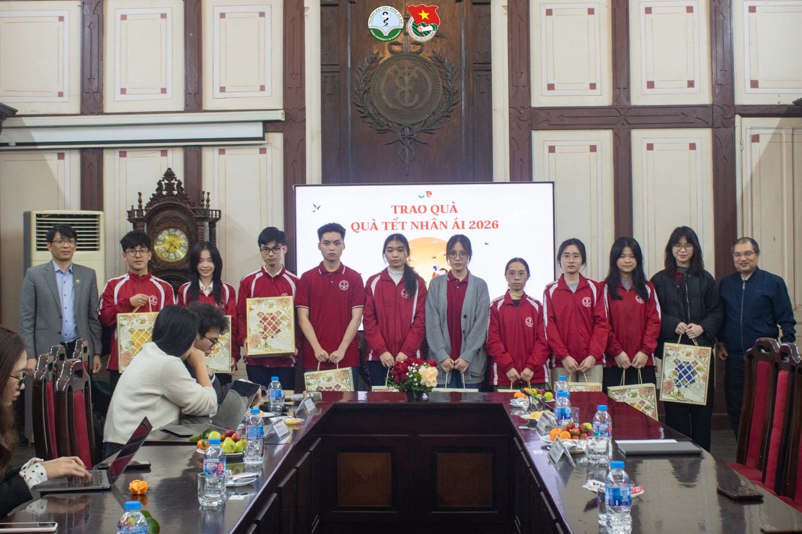(Trao quà, bộ lịch và lì xì cho các bạn sinh viên có hoàn cảnh khó khăn.)