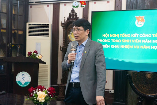 Mở đầu chương trình, Đ/c Nguyễn Công Trường - Bí thư Đoàn trường đã trình bày Báo cáo tổng kết hoạt động Đoàn và phong trào thanh niên năm học 2024 – 2025. Với sự chỉ đạo tổ chức phù hợp, kịp thời, Đoàn Thanh niên luôn dốc hết sức lực đẩy mạnh các hoạt động hướng nghiệp, cuộc thi đổi mới sáng tạo, các dự án thiện nguyện và đa dạng lĩnh vực khác; với mục tiêu không chỉ tổ chức các hoạt động có ý nghĩa đối với sinh viên trong trường, mà còn tạo ra giá trị thực tế cho cộng đồng. Luôn theo sát những mục tiêu hoạt động do Thành đoàn Hà Nội đề ra, Đoàn Thanh niên Trường Đại học Dược Hà Nội hoạt động năng nổ, hiệu quả, nhận được sự tín nhiệm từ Thành đoàn, Ban Giám hiệu nhà trường cũng như đông đảo sinh viên trong trường. Bên cạnh đó, buổi Tổng kết cũng chỉ ra một số hạn chế còn tồn đọng; đồng thời rút ra những bài học kinh nghiệm quan trọng cho công tác chỉ đạo, điều hành trong thời gian tới.