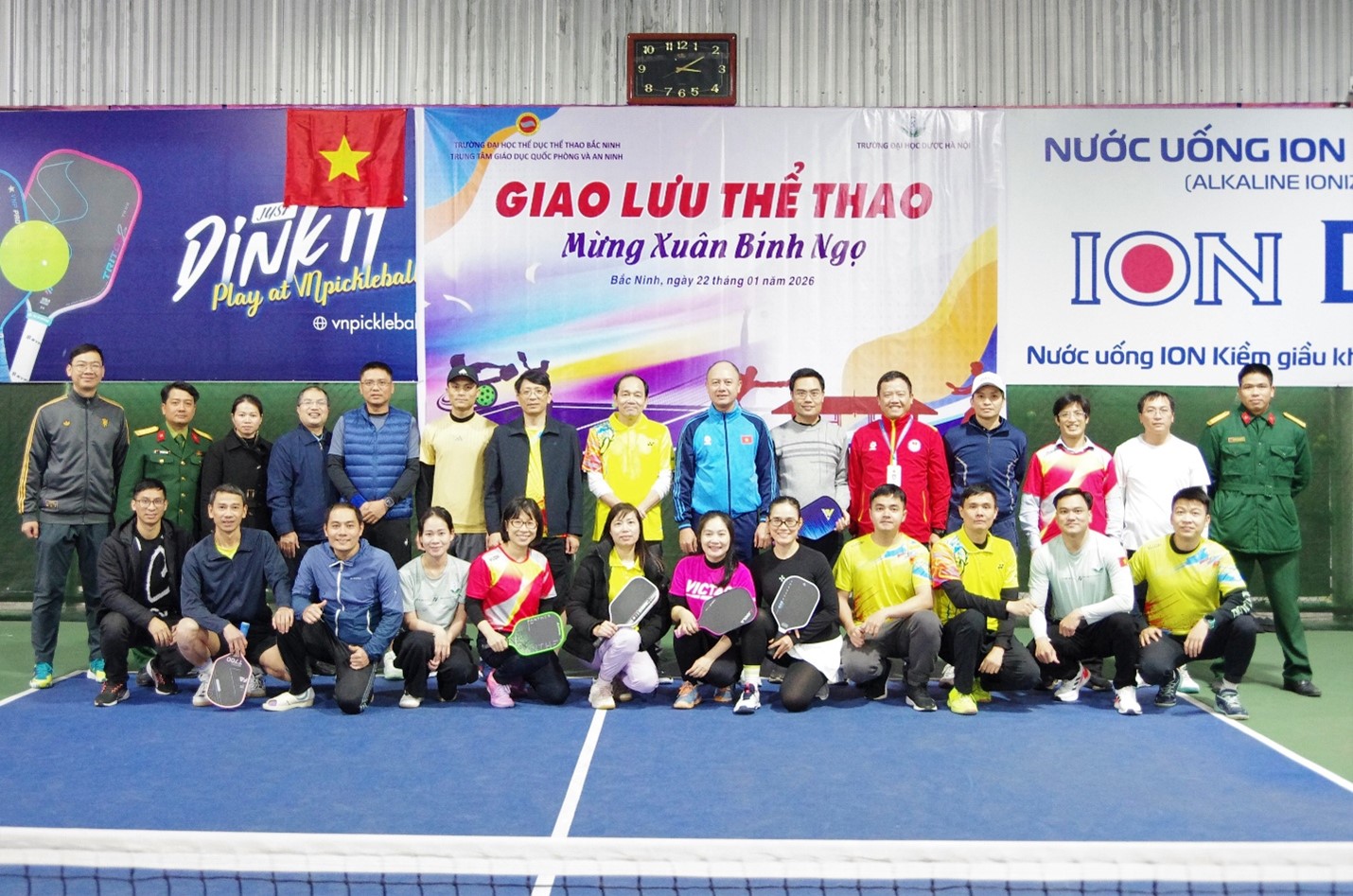 Nhận lời mời của Trung tâm Giáo dục Quốc phòng và An Ninh, Trường ĐH Thể dục thể thao Bắc Ninh, ngày 22/01/2026, đoàn vận động viên của Trường Đại học Dược Hà Nội đã tham gia hoạt động giao hữu thể thao tại Trường Đại học Thể dục Thể thao Bắc Ninh. Ngày này, khuôn viên Trường Đại học Thể dục Thể thao Bắc Ninh đã trở thành sân chơi đầy màu sắc cho những tín đồ thể thao với hai nội dung pickleball và bóng bàn trong không những ngày đầu năm mới, vui tươi, sôi động đã tràn ngập khắp nơi.
