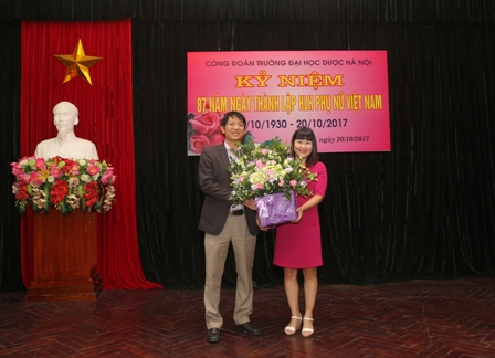 Đồng chí Phạm Văn Tươi, Phó chủ tịch thay mặt Ban Chấp hành Công đoàn đã tặng hoa và gửi lời chúc tốt đẹp nhất đến chị em, chúc toàn thể chị em Trường Đại học Dược Hà Nội hạnh phúc trong cuộc sống và thành công trong sự nghiệp.