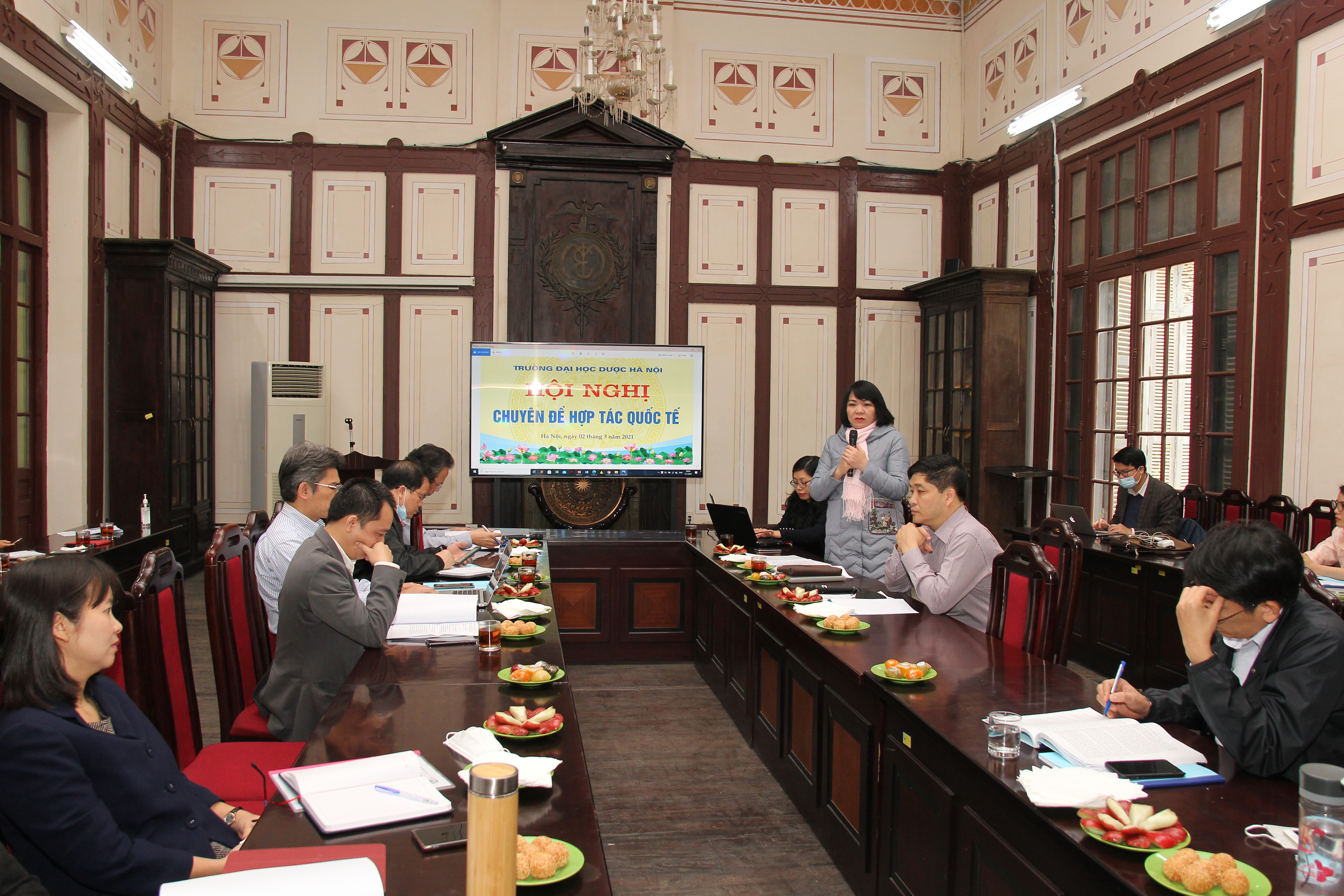 Tại buổi họp, ThS. Đinh Thị Hiền Vân, Trưởng phòng Hợp tác Quốc tế (HTQT) đã có bài trình bày về Đánh giá kết quả công tác HTQT năm 2020 của Trường Đại học Dược Hà Nội, Tổng hợp ý kiến phản hồi của các đơn vị về công tác HTQT và đề xuất một số nội dung trọng tâm triển khai 2021. Đại diện các Ban quản lý dự án, chương trình hợp tác; các đơn vị có hoạt động HTQT đã cập nhật tiến độ và chia sẻ về những khó khăn, vướng mắc gặp phải trong quá trình tổ chức thực hiện.