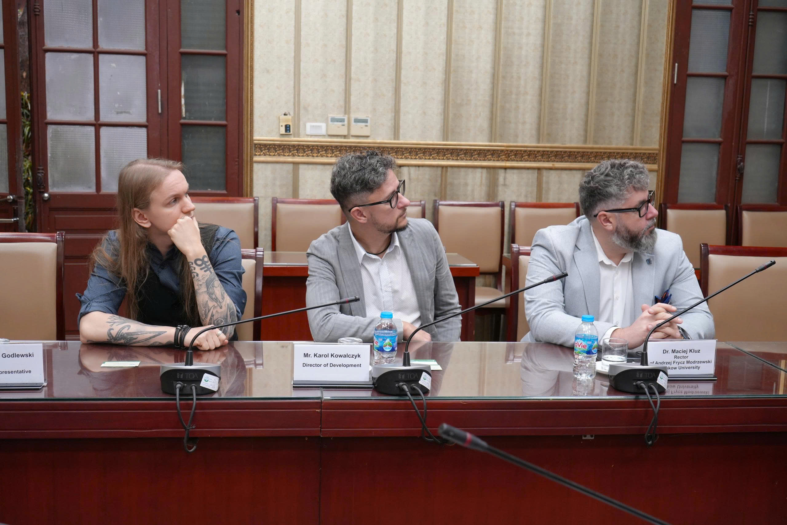 Ngày 31 tháng 10 năm 2025, Trường Đại học Dược Hà Nội vinh dự đón tiếp đoàn đại diện Đại học Krakow và Vizja Universities Group, Ba Lan đến thăm và làm việc, thành phần đoàn bao gồm TS Maciej Kluz – Hiệu trưởng Andrzej Frycz Modrzewski Krakow University, Ông Karol Kowalczyk – Giám đốc phụ trách Hợp tác Phát triển VIZJA Universities Group, Ông Dawid Godlewski thành viên VIZJA Universities Group.