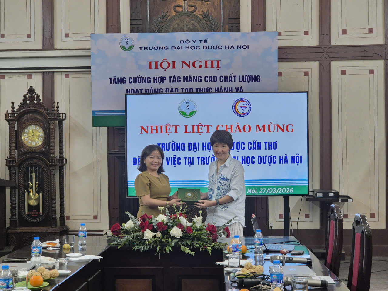 Sáng ngày 27/03/2026, đoàn Đại học Y Dược Cần Thơ do TS. Phan Thị Luyện, Phó Chánh Văn phòng Đại học Y Dược Cần Thơ làm trưởng đoàn đã đến thăm và làm việc với Trường Đại học Dược Hà Nội.
