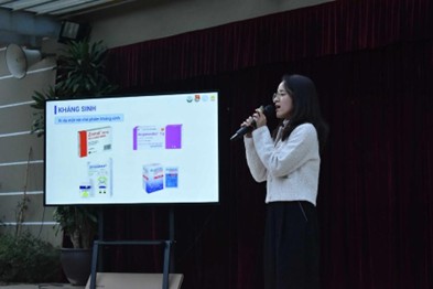 Trong phần chia sẻ chính, Dược sĩ Lê Thị Nguyệt Minh đã truyền tải những kiến thức sinh động, dễ hiểu về sử dụng kháng sinh an toàn, nguy cơ kháng kháng sinh và biện pháp phòng ngừa. Các tình huống lâm sàng thực tế và lời khuyên gần gũi đã giúp học sinh hiểu rõ hơn tầm quan trọng của việc dùng thuốc đúng cách, tránh lạm dụng kháng sinh và chủ động bảo vệ sức khỏe bản thân.