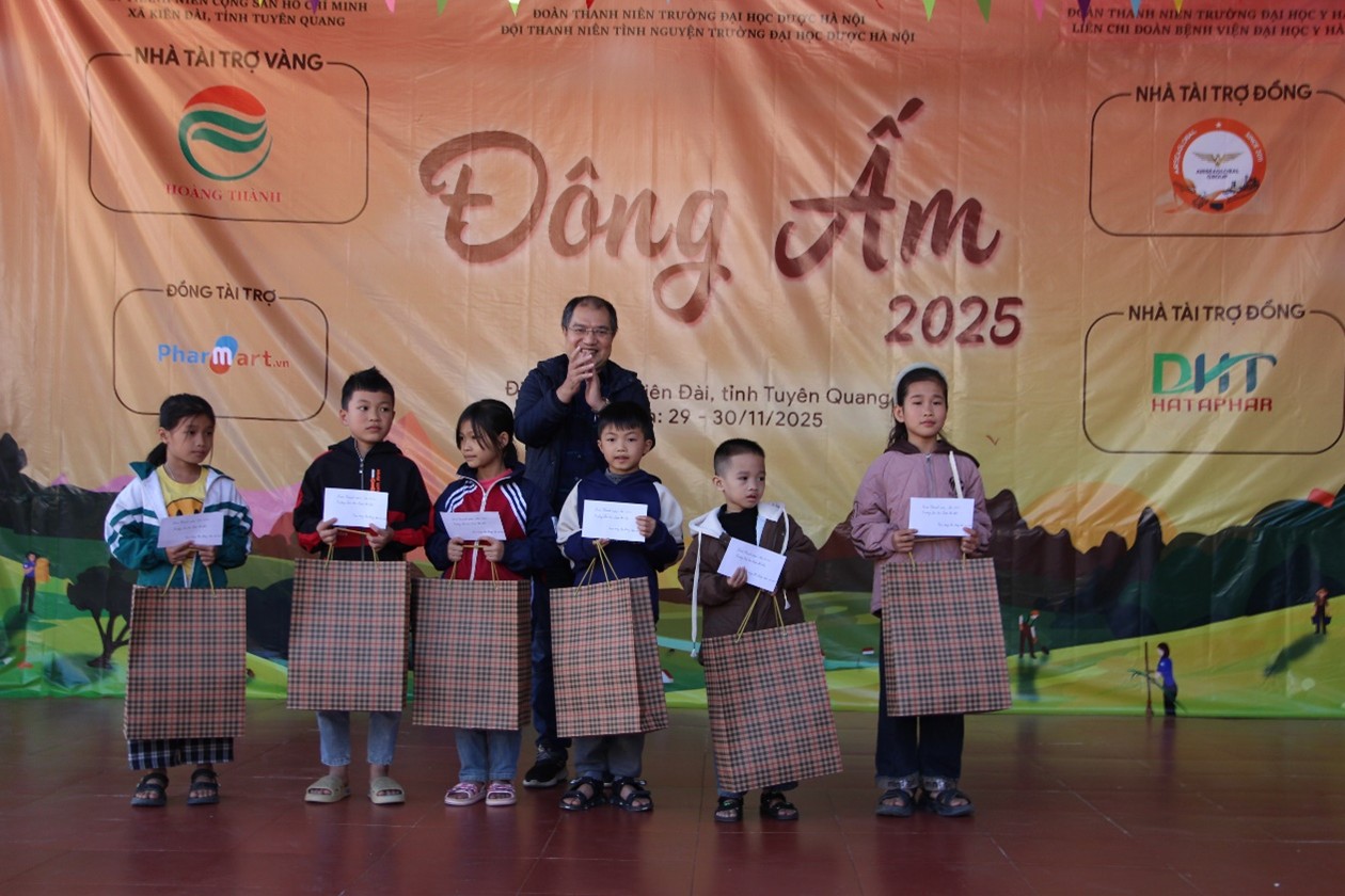 Đoàn Trường Đại học Dược Hà Nội đã trao tặng 12 suất học bổng cho học sinh có hoàn cảnh khó khăn, giúp các em thêm động lực phấn đấu trong học tập; trao 03 suất quà ý nghĩa cho các hộ gia đình có hoàn cảnh đặc biệt trên địa bàn xã, góp phần chia sẻ khó khăn và lan tỏa tinh thần tương thân, tương ái trong cộng đồng. Đặc biệt, đoàn tình nguyện đã trao tặng 02 tủ sách cho Trường PTDT bán trú Tiểu học Kiên Đài và Trường PTDT bán trú THCS Kiên Đài; trao vật tư y tế cho Trạm Y tế xã Kiên Đài.