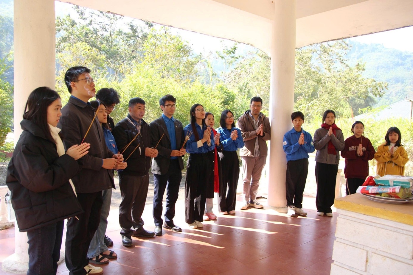 Sau khi hoàn thành hoạt động khám, cấp phát thuốc, đoàn công tác Trường Đại học Dược Hà Nội đã đến dâng hương tại Bia tưởng niệm các anh hùng liệt sĩ xã Kiên Đài tại thôn Khun Cúc, Di tích lịch sử Mặt trận Dân tộc Thống nhất Việt Nam tại thôn Làng Khây 1, thể hiện lòng tri ân đối với các thế hệ đi trước.