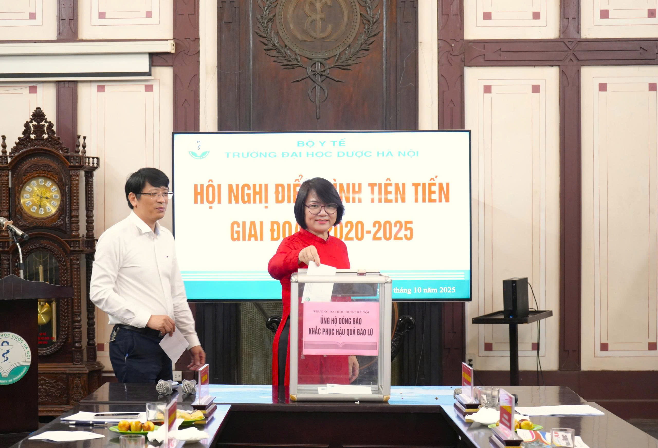 Nhằm chia sẻ những mất mát, khó khăn của đồng bào tại các vùng bị ảnh hưởng bởi thiên tai, lũ lụt, lãnh đạo Nhà trường đã phát động các đại biểu dự Hội nghị ủng hộ đồng bào vùng bị ảnh hưởng.