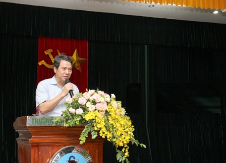 GS.TS Nguyễn Thanh Bình- Bí thư Đảng ủy, Hiệu trưởng Nhà trường phát biểu chỉ đạo tại buổi tập huấn thi THPT Quốc gia