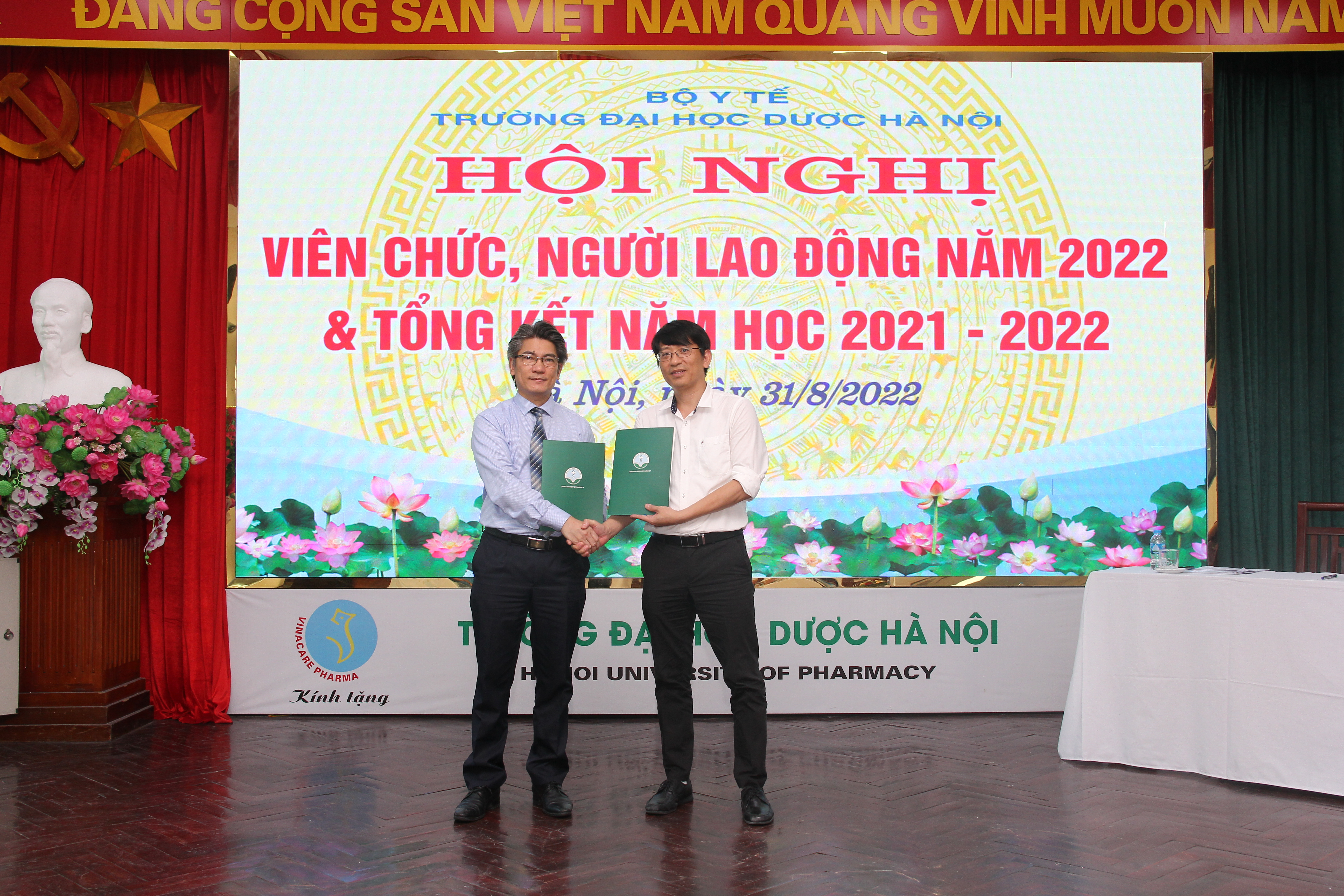 Nhà trường đãphát động phong trào thi đua và GS.TS Nguyễn Hải Nam- Hiệu trưởng Nhà trường cùng PGS.TS. Nguyễn Mạnh Tuyển, Chủ tịch Công đoàn Trường ký kết giao ước thi đua năm học 2022-2023. Thay mặt viên chức, người lao động Nhà trường GS.TS Nguyễn Thanh Bình - Bí thư Đảng ủy, Chủ tịch Hội đồng Trường & GS.TS Nguyễn Hải Nam- Hiệu trưởng Nhà trường đã tặng hoa chúc mừng các viên chức được Hội đồng Giáo sư Nhà nước công nhận đạt tiêu chuẩn chức danh và được Nhà trường bổ nhiệm Phó giáo sư năm 2022, gồm: PGS.TS. Nguyễn Văn Hải- Khoa Công nghệ Hóa dược; PGS.TS. Phạm Thế Hải- Phòng Khoa học công nghệ- Hợp tác phát triển; PGS.TS. Vũ Đình Hòa – TT DI & ADR; PGS.TS. Trần Thị Hải Yến- Khoa Bào chế & Công nghệ dược phẩm. Đây là danh hiệu cao quý Nhà nước đã dành tặng cho các nhà giáo có những cống hiến cho ngành giáo dục trong công tác giảng dạy và nghiên cứu khoa học. Tiến sĩ Phạm Bảo Tùng – Trưởng Ban Thanh tra Nhân dân đã báo cáo công tác 6 tháng đầu năm 2022 của Ban Thanh tra nhân dân.
