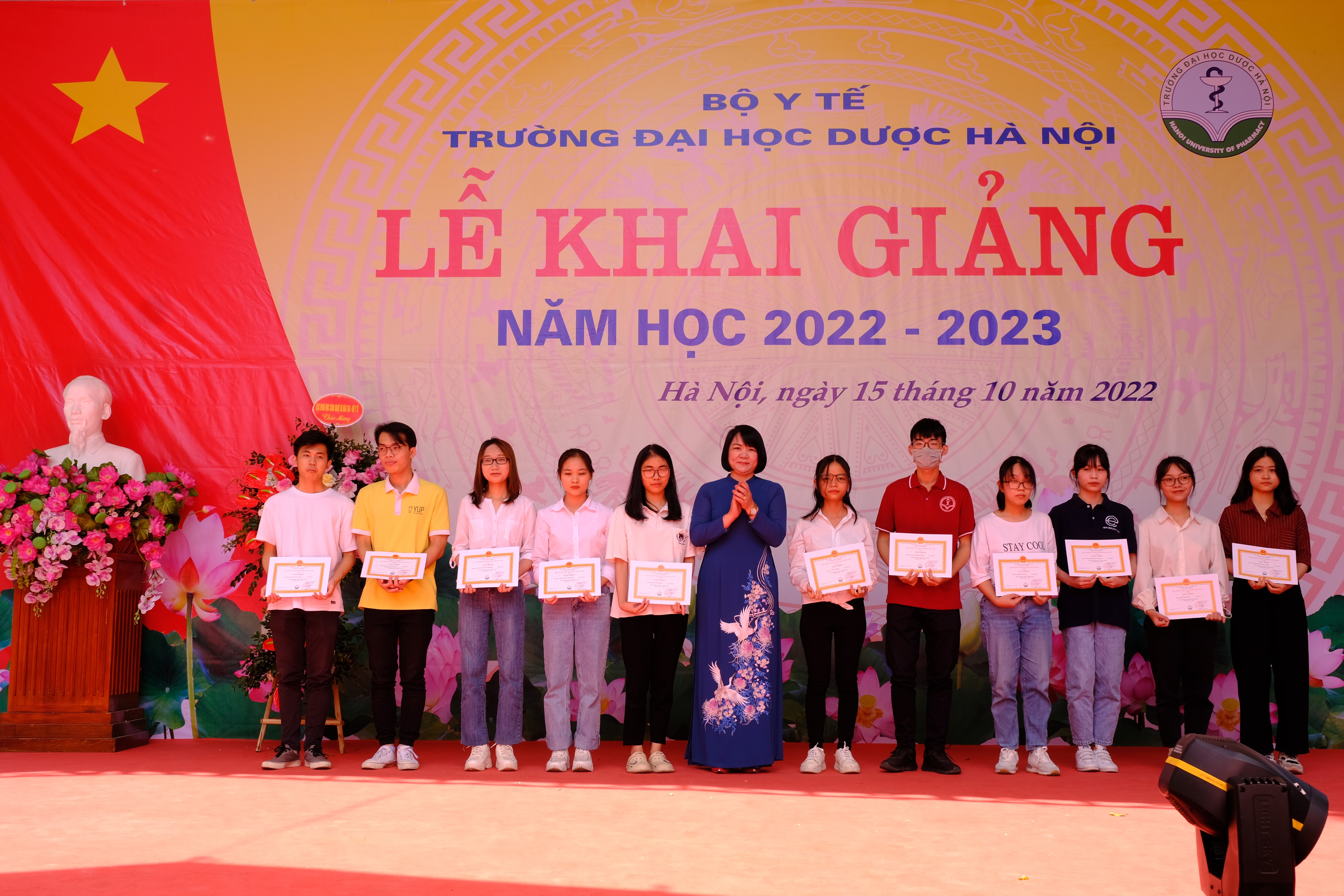 Trong buổi lễ, lãnh đạo Nhà trường đã trao Giấy khen và phần thưởng cho 04 thủ khoa các ngành đào tạo gồm: Phạm Huyền Trang- ngành Dược học; Phạm Minh Tuấn- ngành Hóa dược; Đào Phạm Đức Nghĩa- ngành Hóa học; Mai Thị Yến Nhi- ngành Công nghệ sinh học và 13 sinh viên có thành tích xuất sắc trong học tập & công tác năm học 2021 – 2022; 68 sinh viên có thành tích xuất sắc trong học tập; 144 sinh viên có thành tích xuất sắc trong công tác.