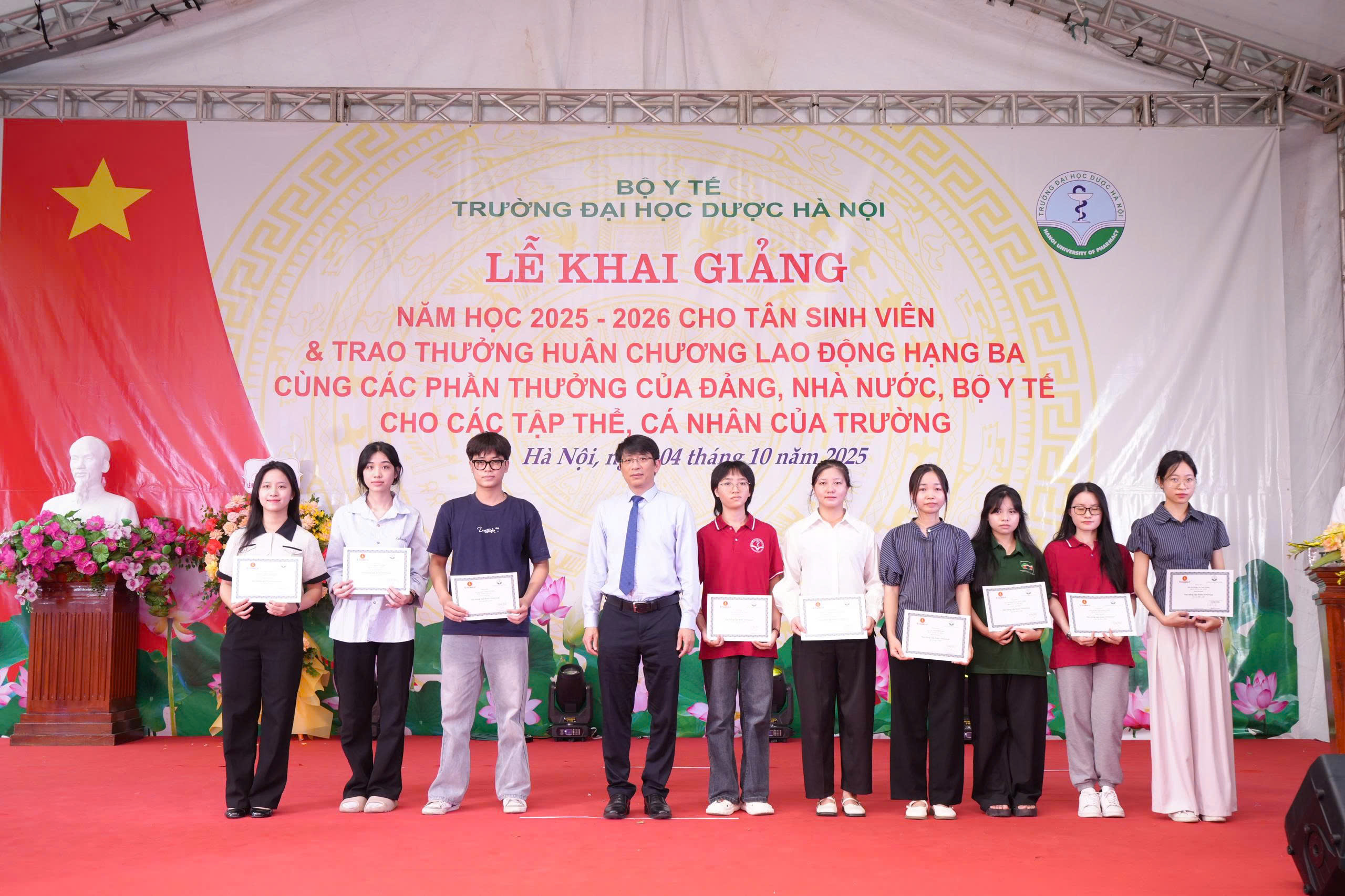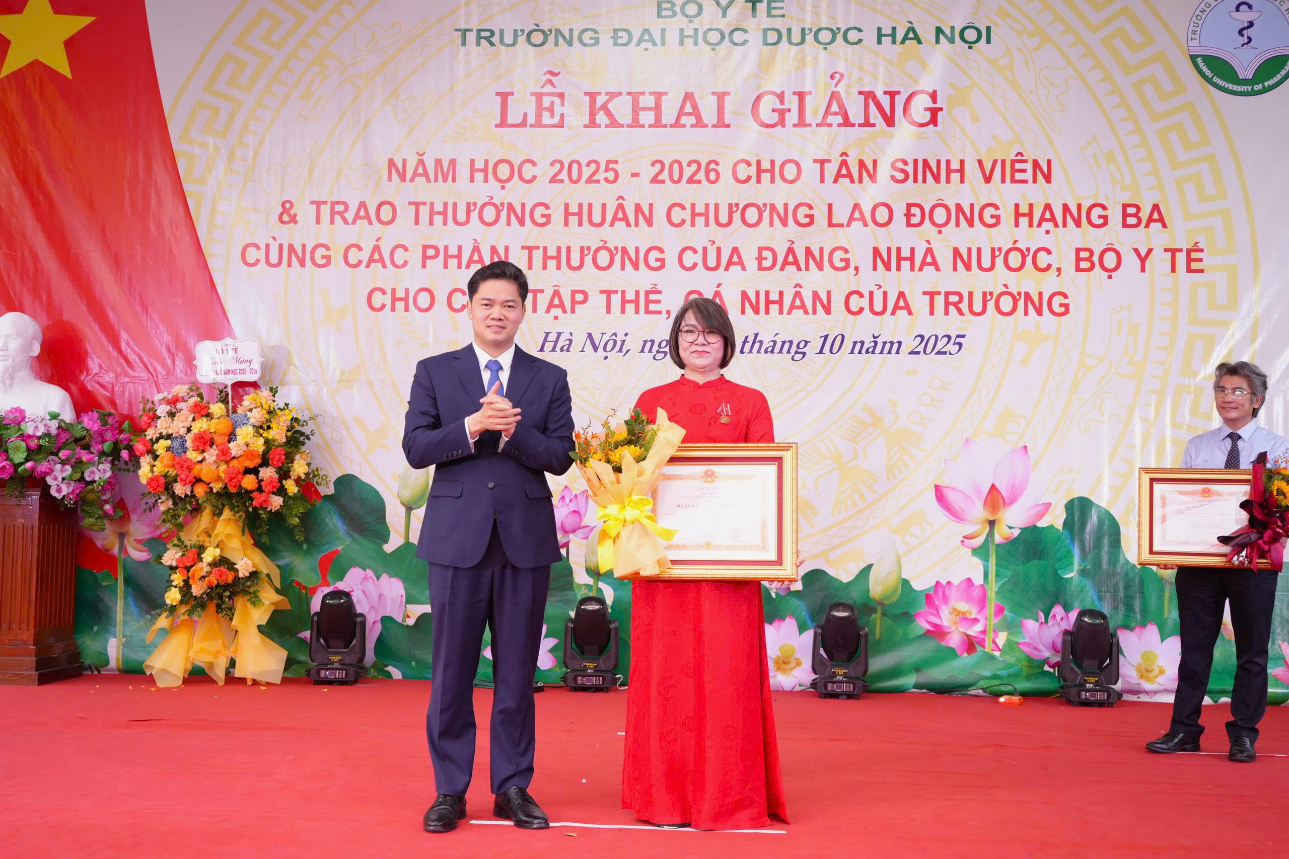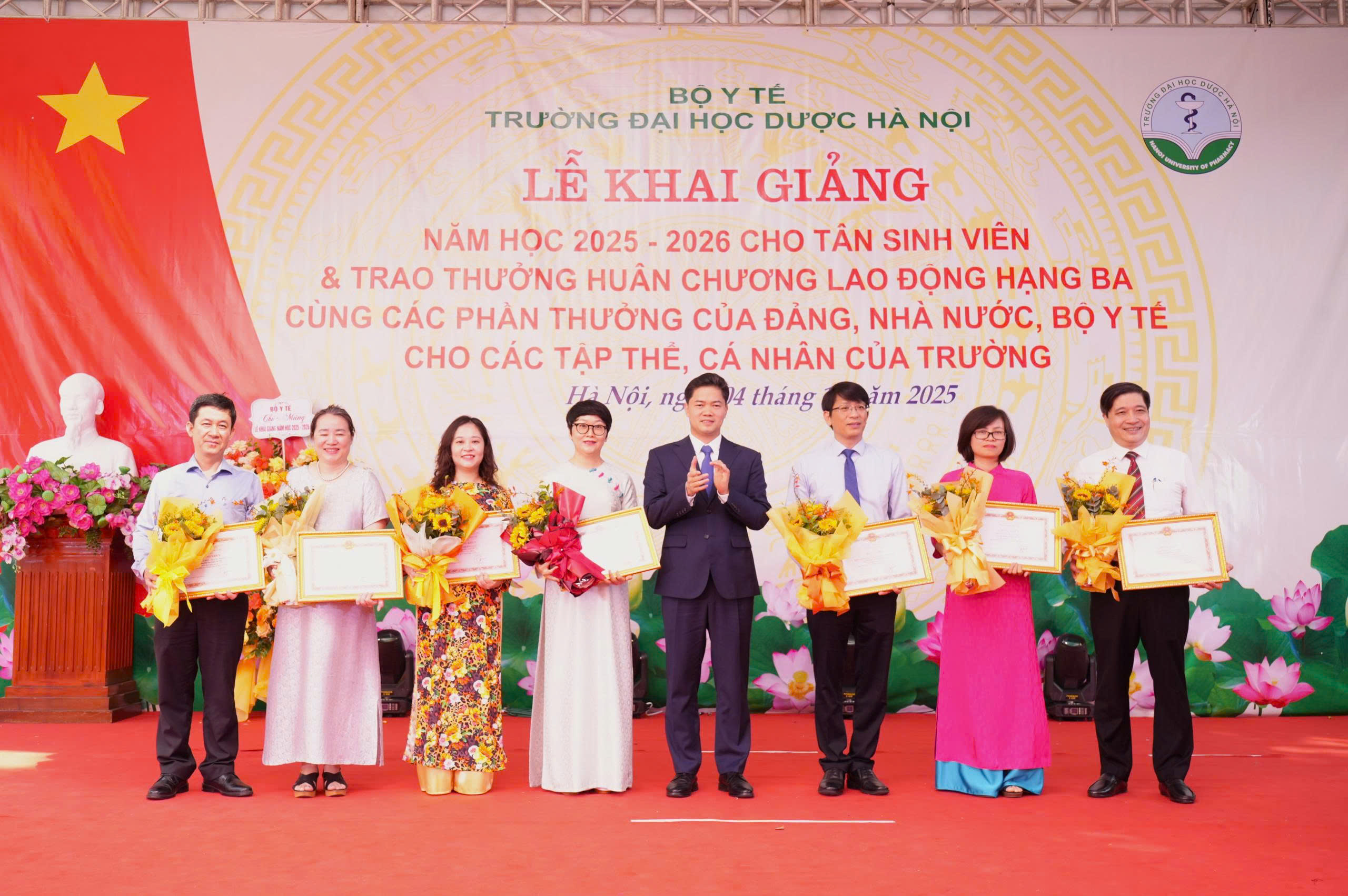 Tại Lễ Khai giảng, ghi nhận những đóng góp công sức của rất nhiều thế hệ giảng viên, viên chức quản lý, VC-NLĐ Nhà trường, với những cống hiến không chỉ cho Trường ĐH Dược HN, mà còn cho sự lớn mạnh và phát triển của ngành Dược, ngành Y tế, cho công tác Chăm sóc, bảo vệ sức khỏe nhân dân, thay mặt lãnh đạo Bộ Y tế đồng chí Vũ Mạnh Hà - Ủy viên dự khuyết BCHTW Đảng, Thứ trưởng thường trực Bộ Y tế thừa ủy quyền của Lãnh đạo nhà nước, Chính phủ, Bộ trưởng Bộ Y tế, đã trao tặng cho các tập thể và cá nhân gồm: