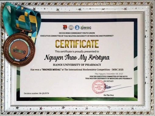 (Huy chương Đồng Cá nhân của bạn Nguyễn Thảo My - Kristýna - Đội HUP - Trường Đại học Dược Hà Nội)